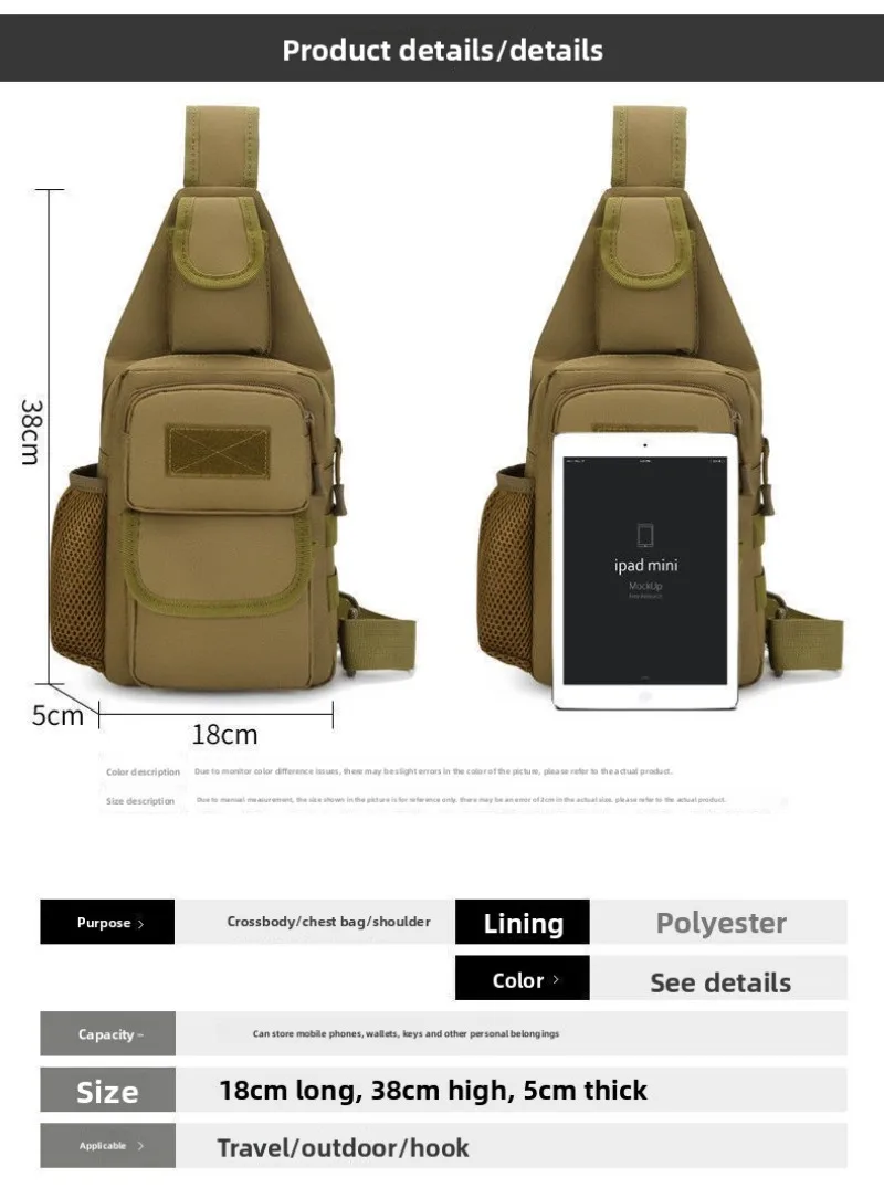Bolsa táctica para el pecho con USB, riñonera Molle para caza y escalada al aire libre
