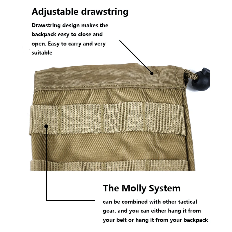 • Diseño multifuncional:Esta bolsa de caza está diseñada para ser versátil, con múltiples compartimentos y cordones ajustables para acomodar diferentes artículos.