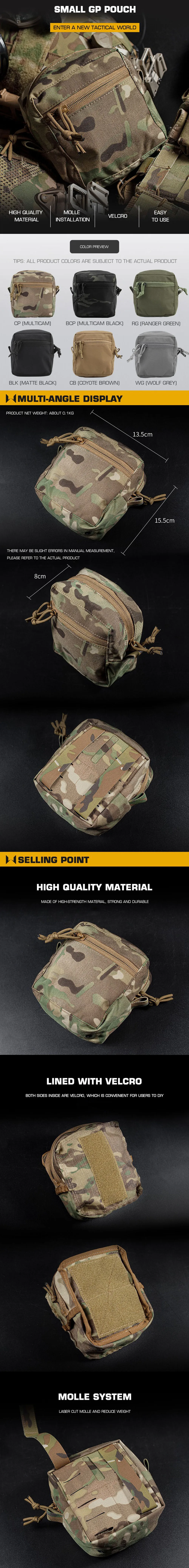 Bolsa táctica pequeña GP YKK con cremallera MOLLE, chaleco de caza, aparejo de pecho, placa, cinturón portador, bolsas, herramienta militar Airsoft, bolsa de artículos diversos