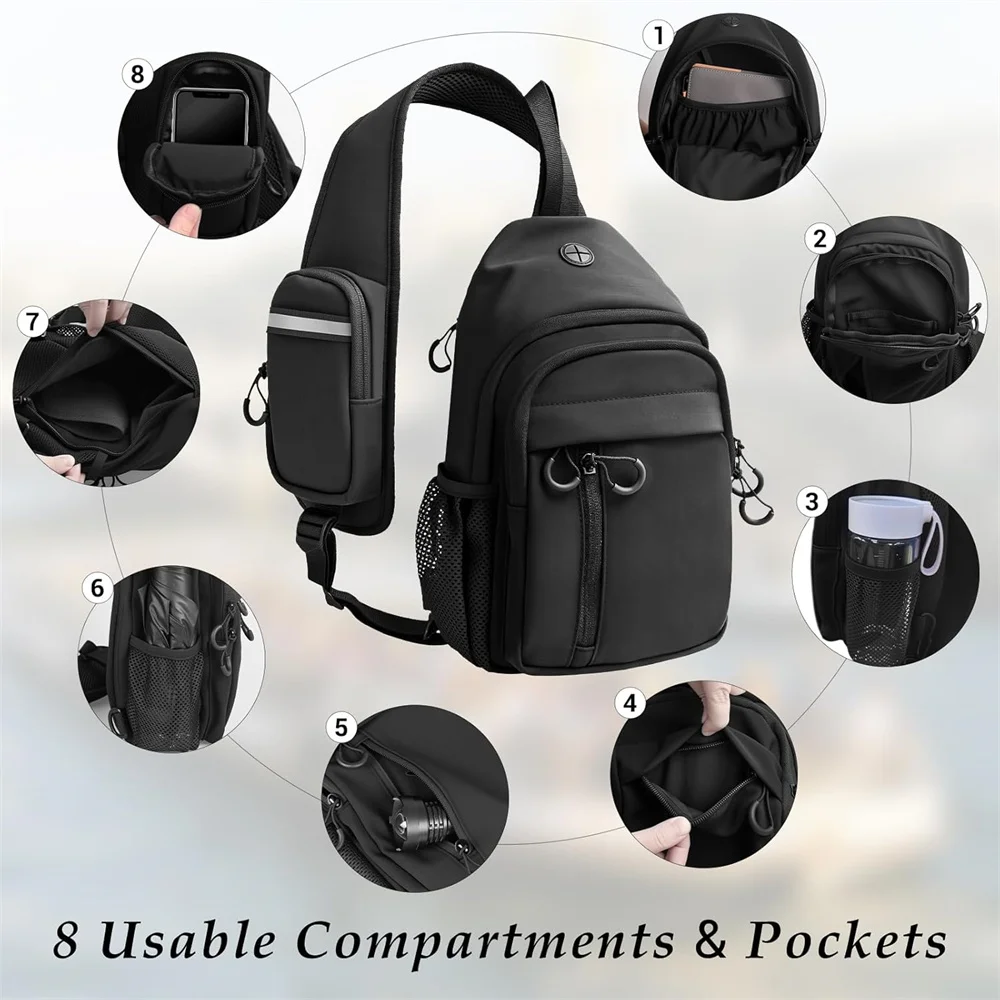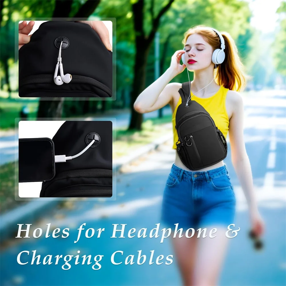 Está diseñado con un cable de carga/puerto para cables de auriculares para evitar eficazmente cables desordenados y un cordón para llaves en la bolsa más grande.Hay dos bucles para colgar en la parte posterior, lo que le permite ajustar la dirección del un solo hombro según sus necesidades.