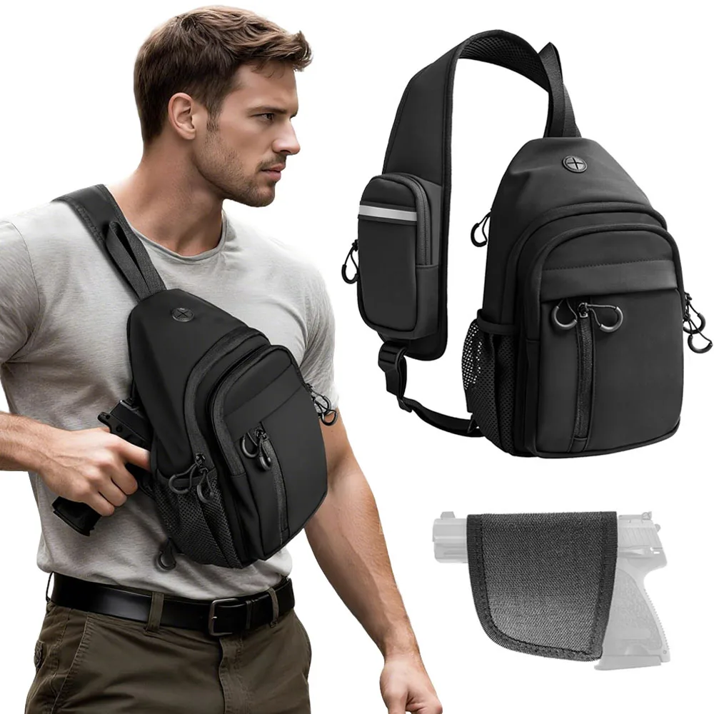 Bolsa táctica para pistola, bolsa con funda para pistola de transporte oculta, bolsa para pistola de hombro, mochila cruzada, bolsa EDC, paquete de pecho para exteriores con funda para pistola