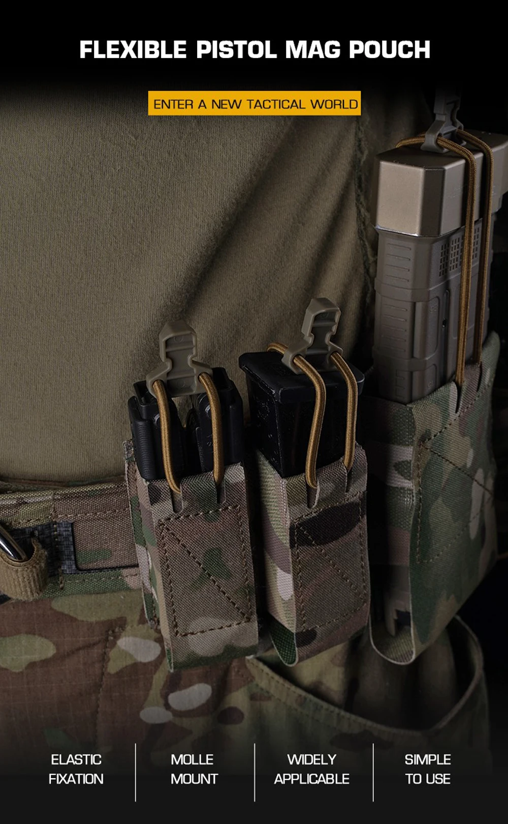 Bolsa táctica para pistola de 9mm, individual G17/19 M9, bolsa para cargador rápido Airsoft para tiro, linterna de caza MOLLE, equipo con funda para cuchillo