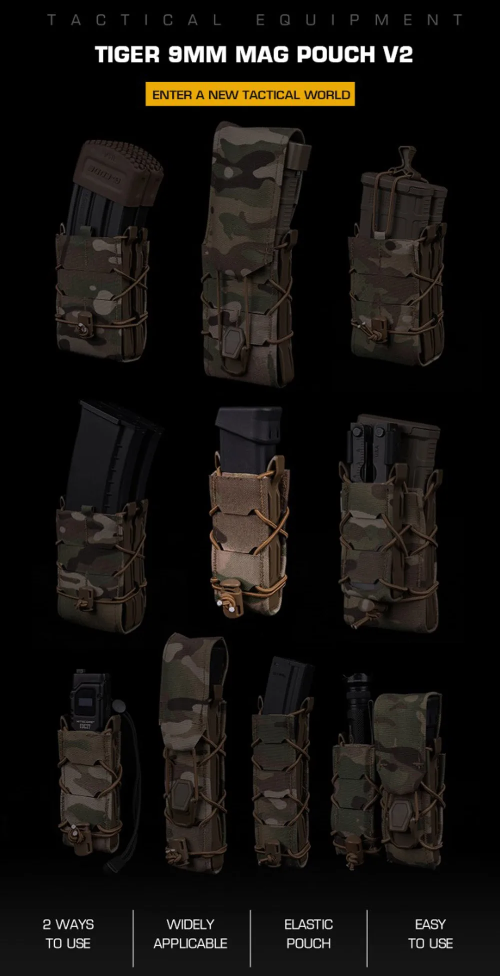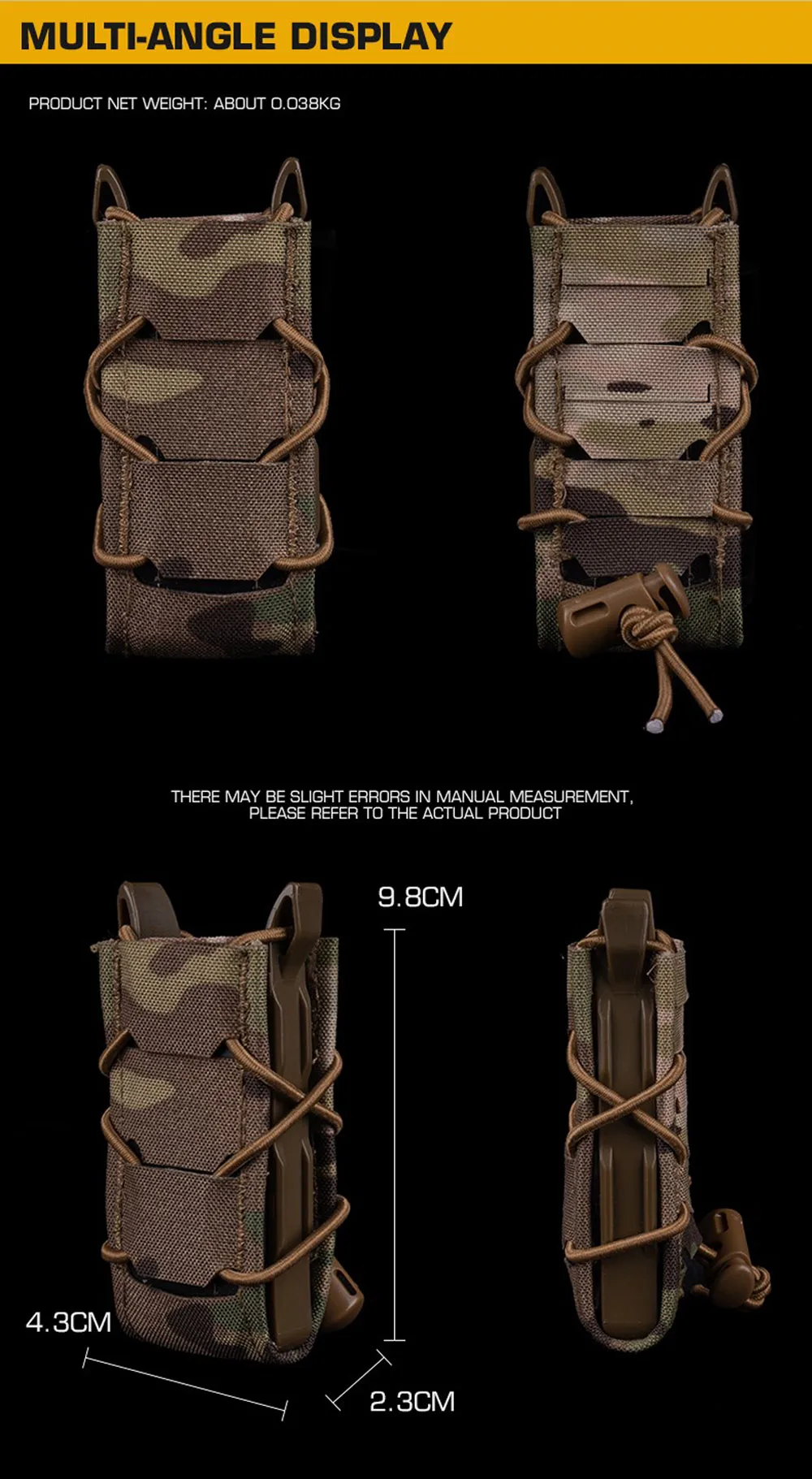 Bolsa táctica para pistola de 9MM, tipo tigre Gen 2, bolsa para revista Airsoft Molle de caza, bolsa de herramientas para linterna al aire libre con tapa abatible