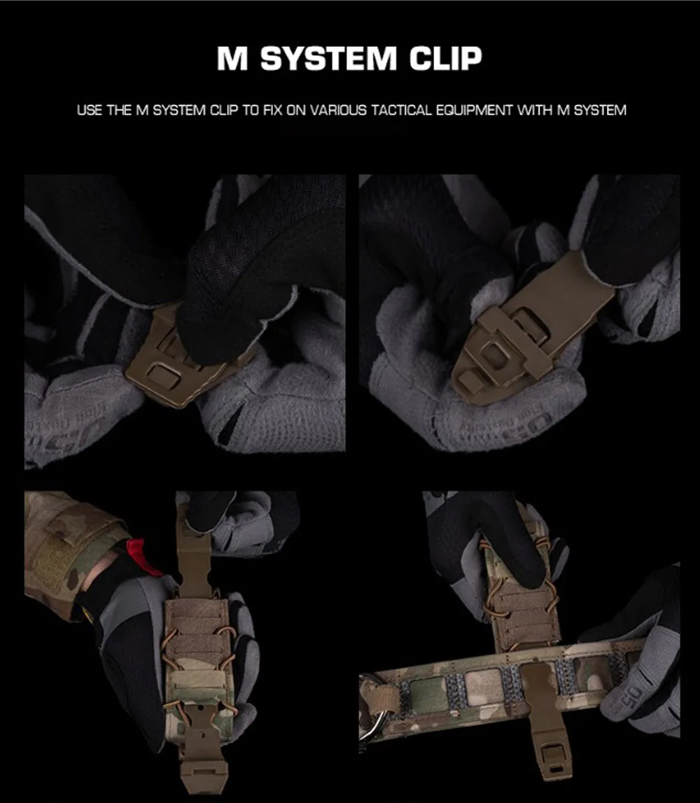 Peso neto del producto: alrededor de 0,077 kg Color del producto: Negro mate/Marrón coyote/Verde Ranger/Gris Wolf/MC/MCBK Material principal: Cordura Escena aplicable: caza, deportes al aire libre y otros accesorios tácticos de atletismo Airsoft CS, etc.