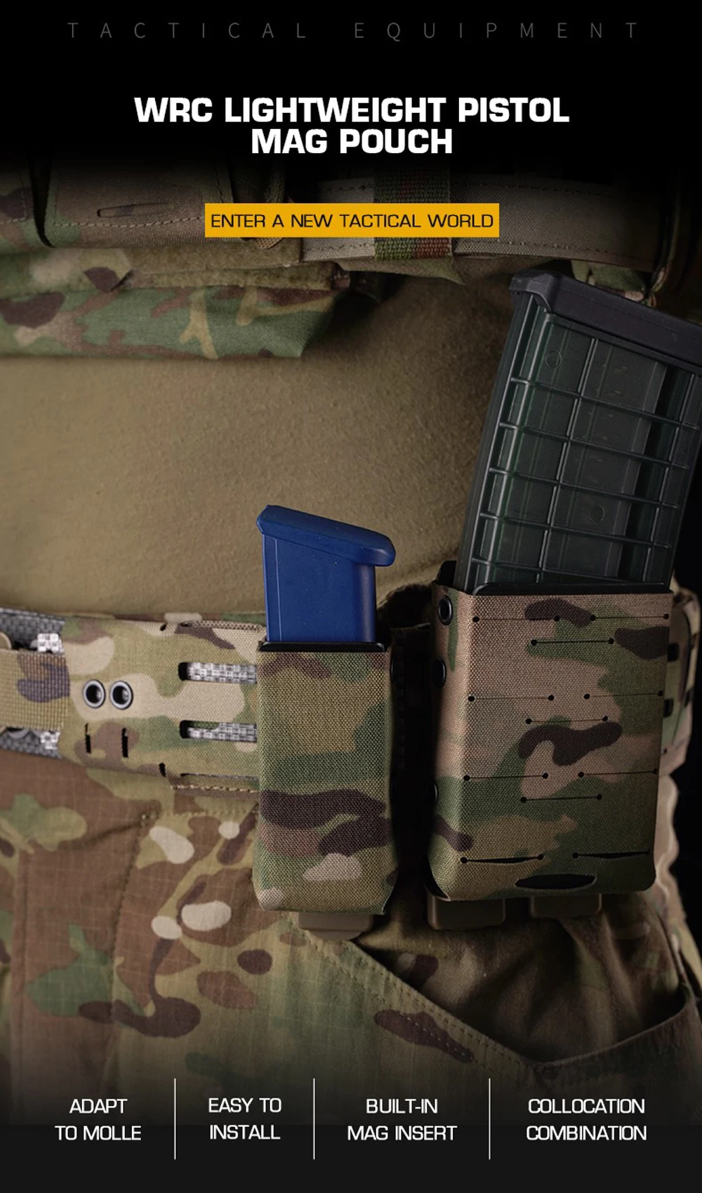 Bolsa táctica para pistola Mag WRC, ligera, Molle de 9mm, bolsa para revistas, inserto de cuña Kydex integrado para caza, equipo militar Airsoft