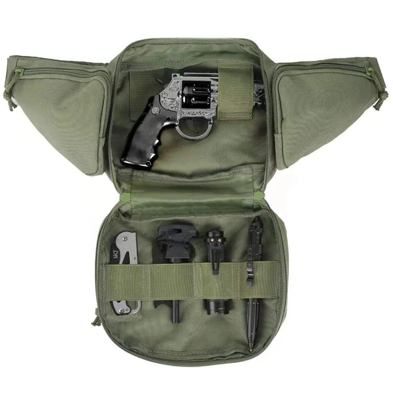 【Totalmente funcional】 Diseño único multifuncional de tres capas impermeable, con dos bolsas triangulares en los dos lados. El diseño de espacio supergrande se puede equipar con varios tipos de pistolas, como 1911 y otras herramientas para exteriores.