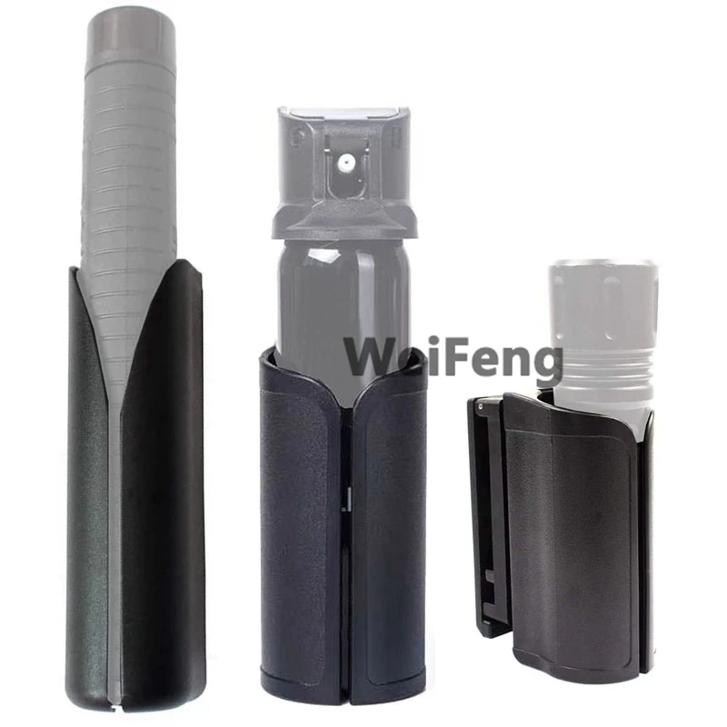 Bolsa táctica de polímero para pulverización, funda para linterna, bastón giratorio de 360 grados, soporte para pulverización de Mace superior abierto, estuche de luz multiherramienta