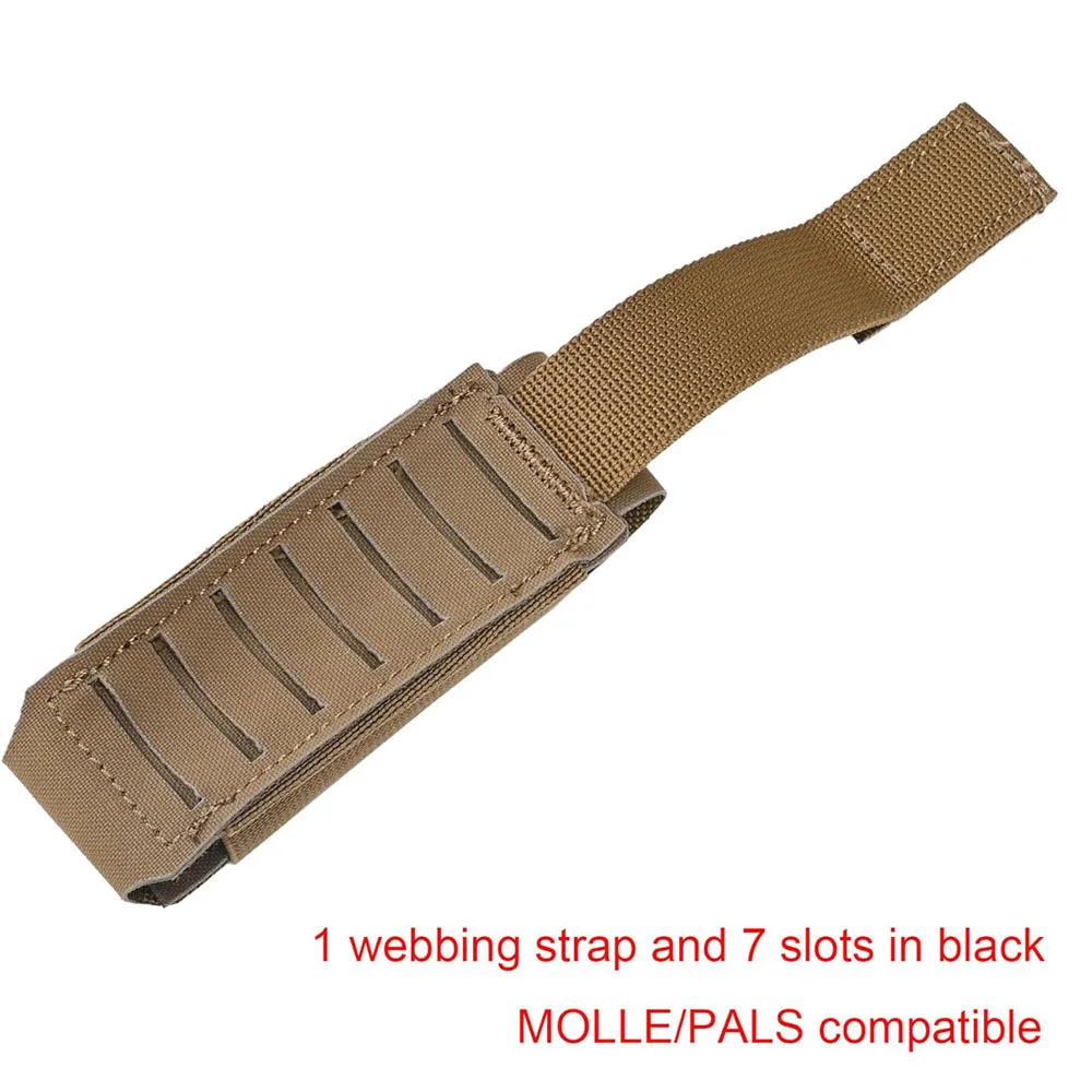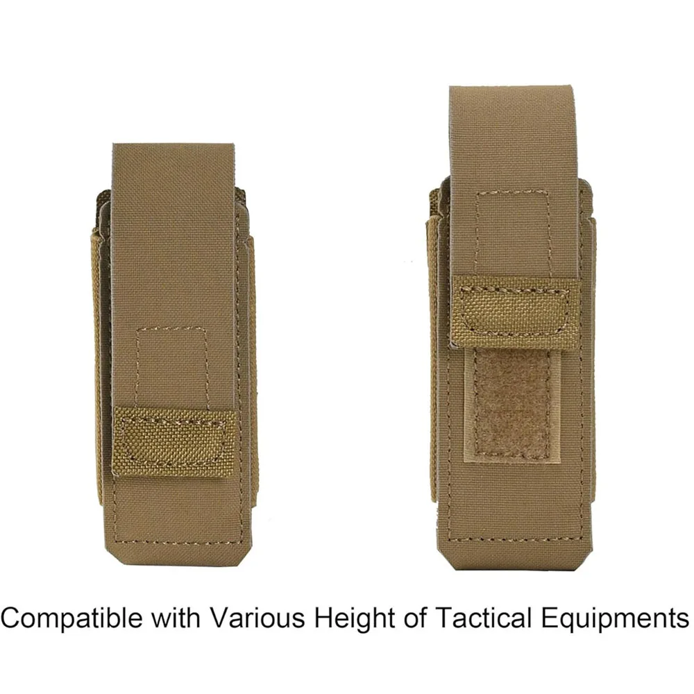【Tela elástica de la bolsa MOLLE】 La tela elástica se adapta a cualquier forma del contenido y se fija en su lugar.La funda rociadora de pimienta MOLLE se puede utilizar no solo como soporte rociador OC sino también como bolsa para granadas aturadas M84, bolsa flashbang, soporte táctico para radio de mano pequeña y bolsa para cargador de 9 mm.