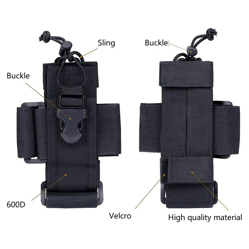 Diseñado con sistema Molle, se puede sujetar a mochila, chaleco, cinturón y otros equipos molle.