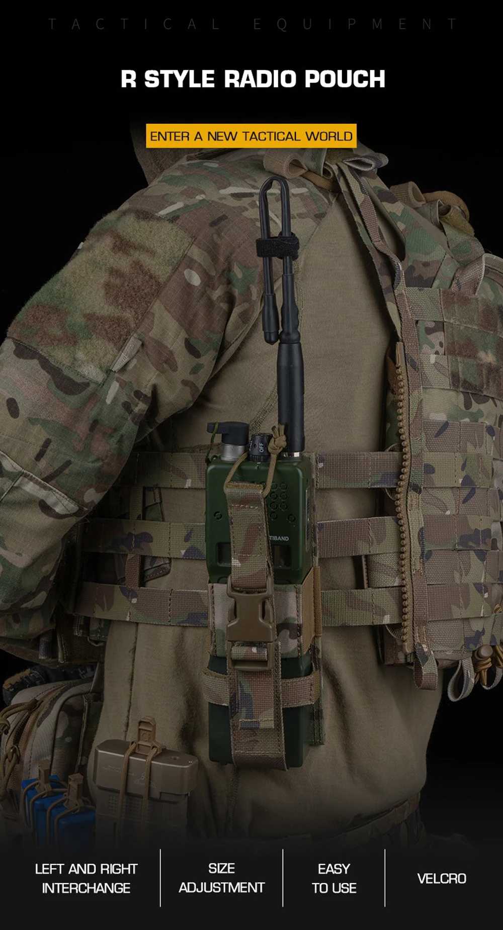 Bolsa táctica de Radio estilo serie R, bolsa Molle para Walkie Talkie, paquete de almacenamiento de vasos de agua con hebilla de liberación rápida, cuerda elástica de choque
