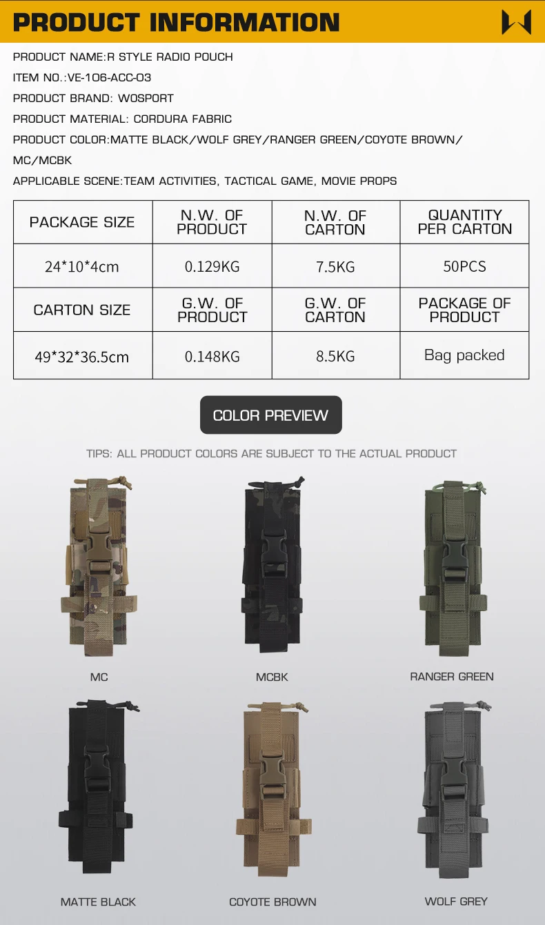 Bolsa de Radio ajustable serie R con soporte MOLLE para portador de placa, aparejo de pecho, accesorios de caza