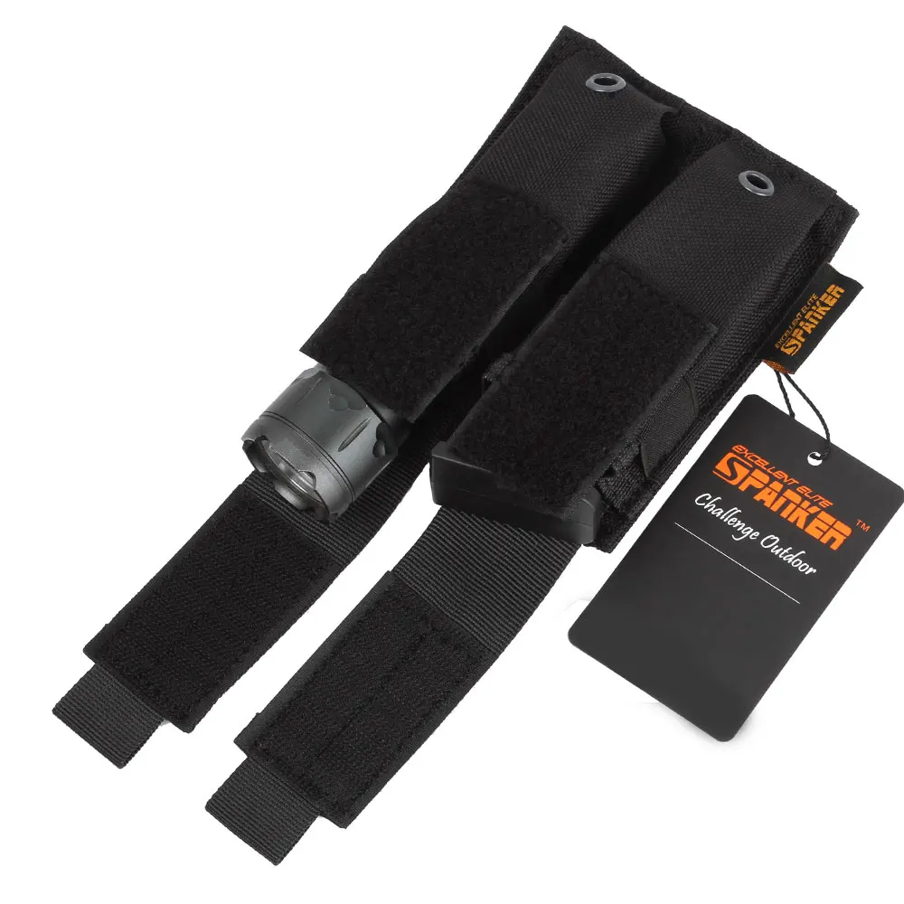 La bolsa doble puede contener linterna, cuchillo u otros dispositivos.