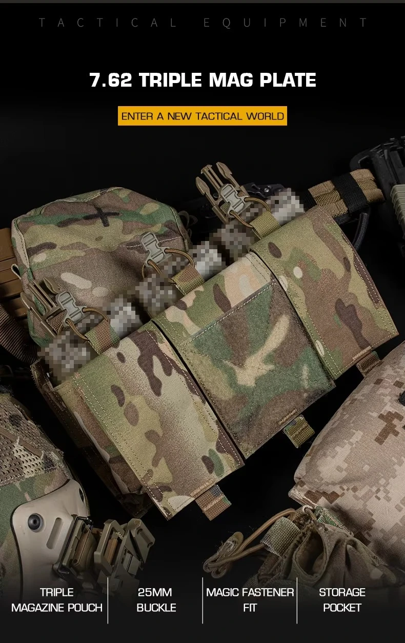 Placa triple Mag duradera de 7,62 x 51 apta para portaplacas con hebilla de 25 mm, accesorios de caza