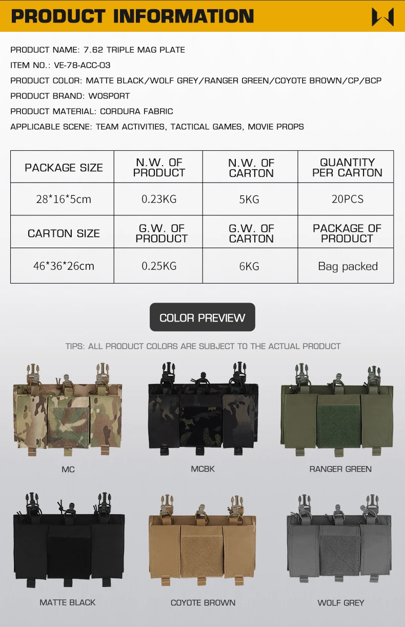 Información del producto: Escena aplicable: equipo de chaleco, accesorios de película. Material del producto: Cordura Color del producto: Negro mate/Verde Ranger/Marrón Coyote/Gris Wolf/MC/MCBK