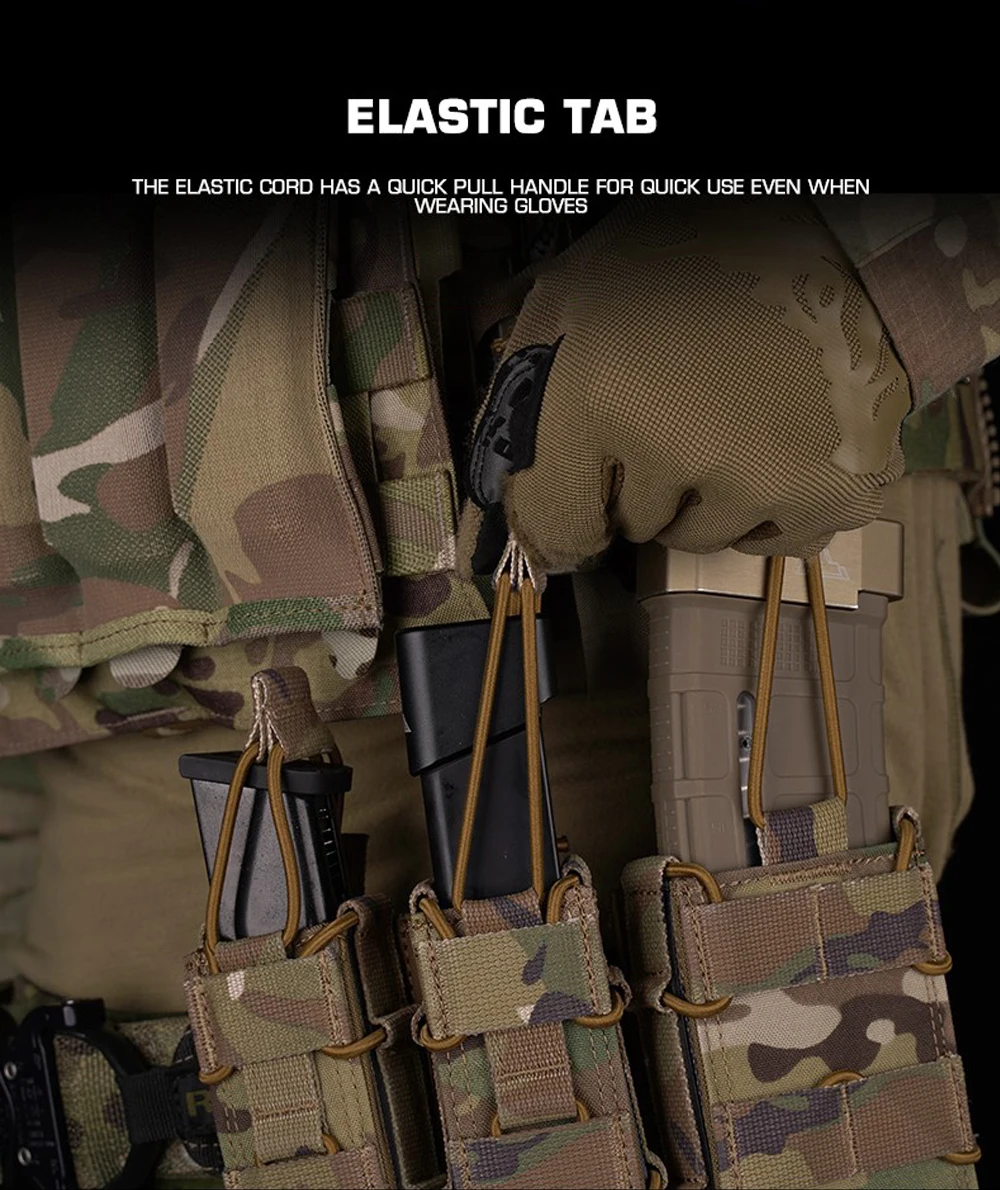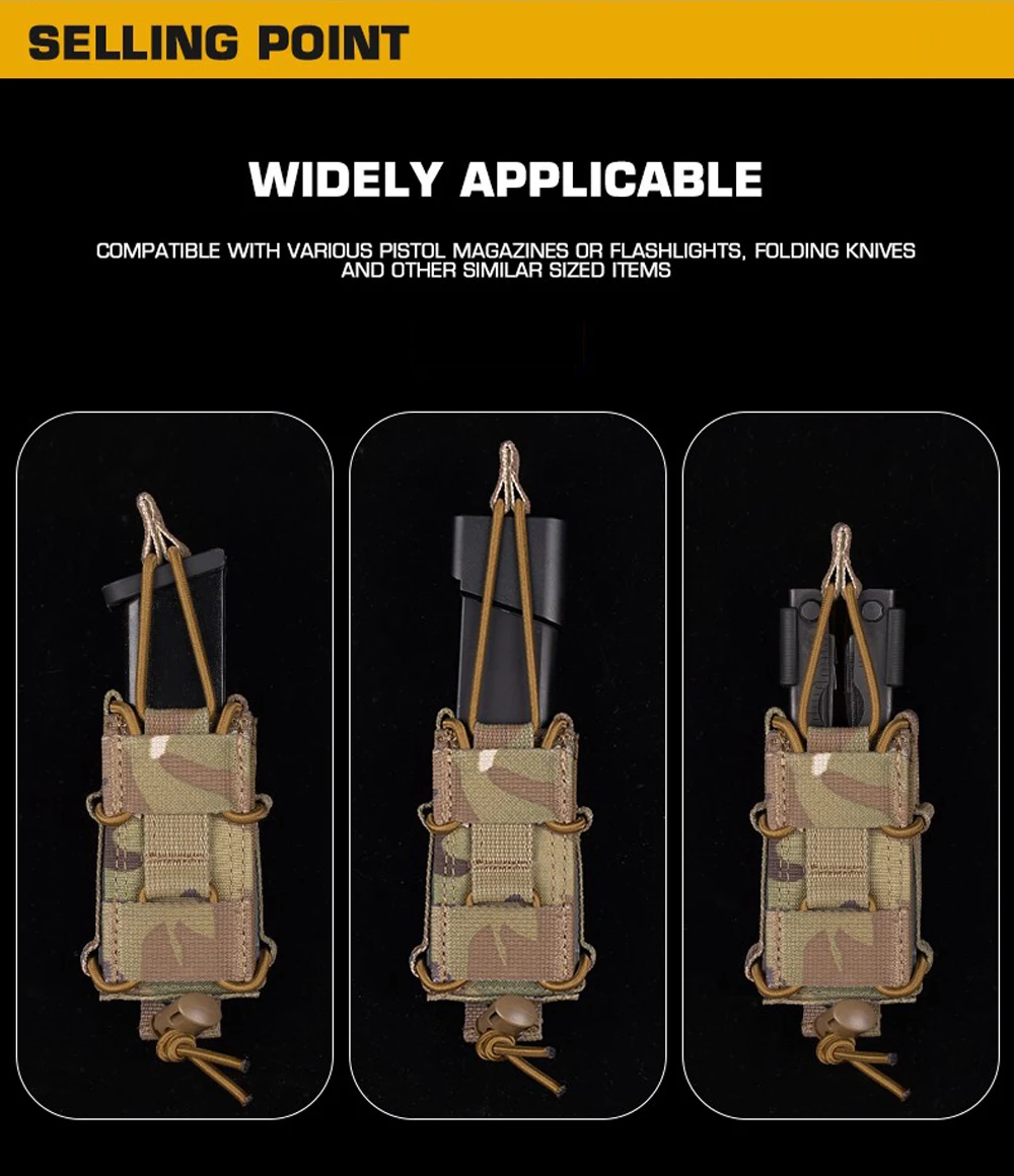 Bolsa táctica para cargador de pistola única, Cable elástico Molle, fijación para caza al aire libre, Airsoft, soporte magnético de 9mm, equipo de bolsa para linterna