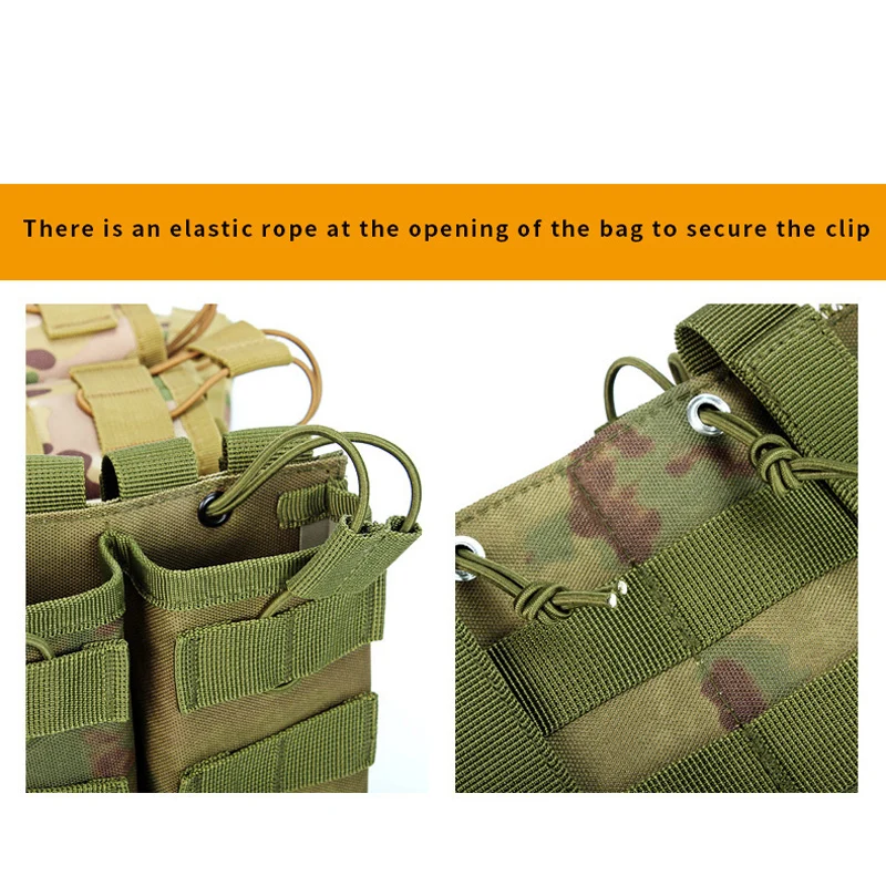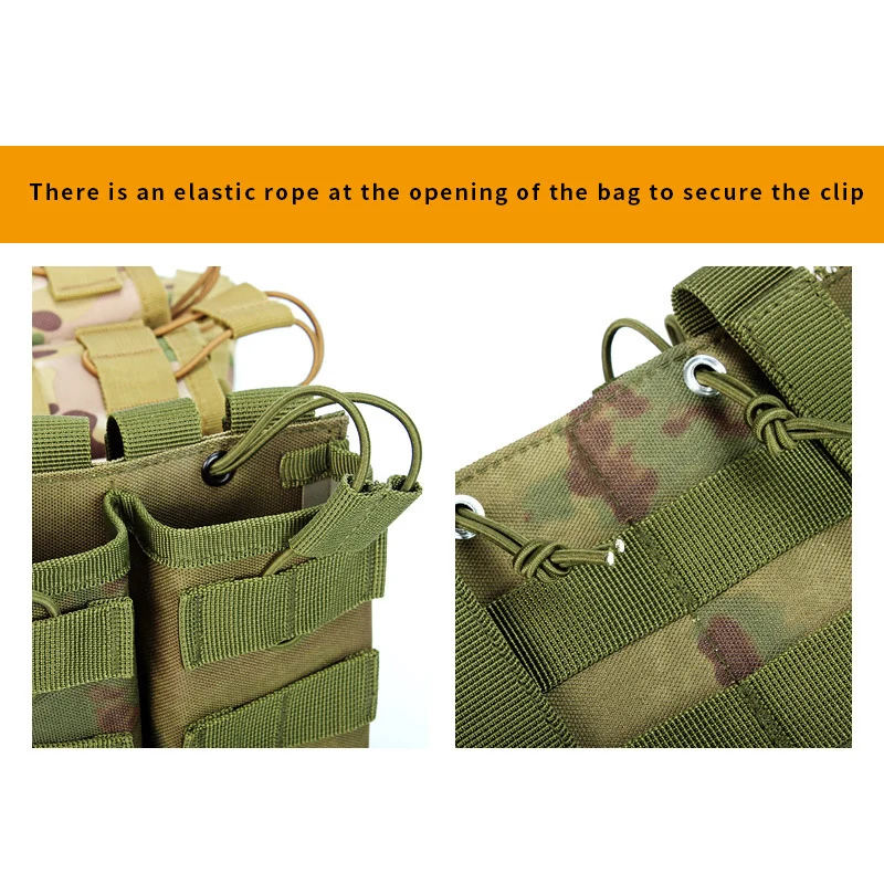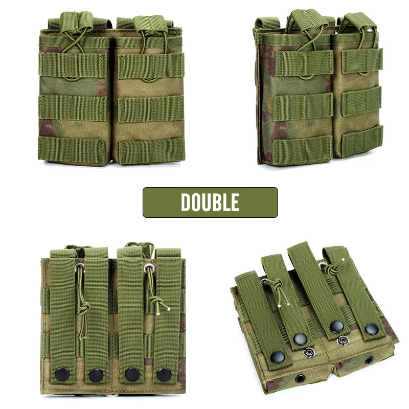 Parece ser de bastante buena calidad, no los he usado durante tanto tiempo. El color es más verde militar de la vieja escuela y los botones de cierre parecen desabrocharse muy fácilmente. Mis cargadores de 7,62 no cabían en esta bolsa.