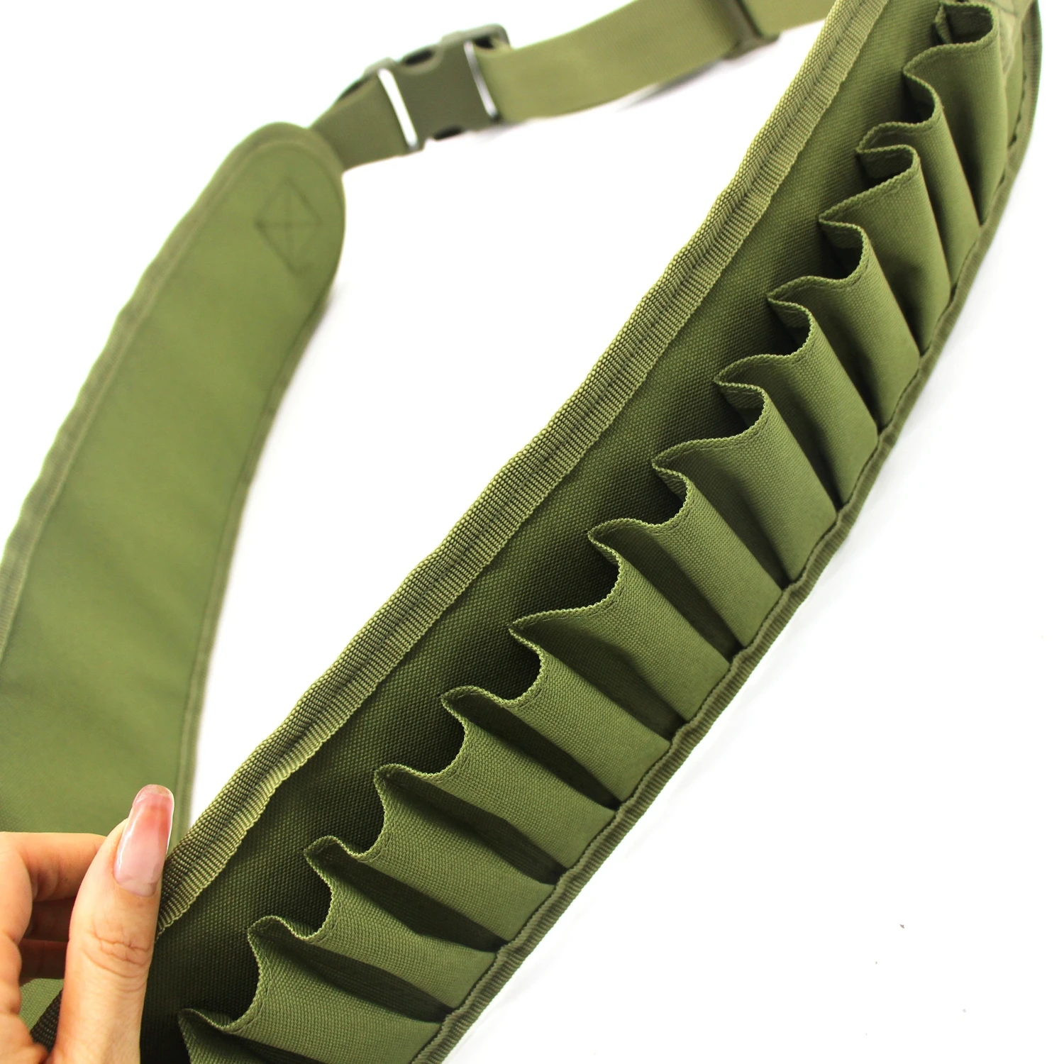 2.El cinturón para escopeta tiene capacidad para hasta 30 proyectiles y cuenta con una hebilla de liberación rápida y una correa resistente de 2 pulgadas.