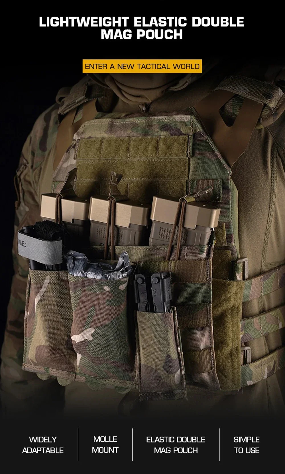 Tactical 5.56/7.62 Magazine Pouch MOLLE Lightweight AK M4 AR15 Hunting Combat Elastic Double Mag Pouch Airsoft Vest Accessories