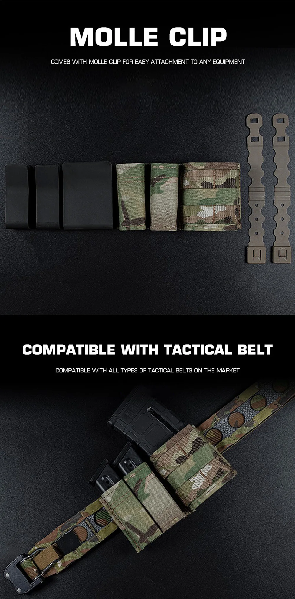 Lleve dos cargadores de pistola de 9 mm y una bolsa independiente para cargadores de rifle de 5,56 para una mejor experiencia de disparo en combate.