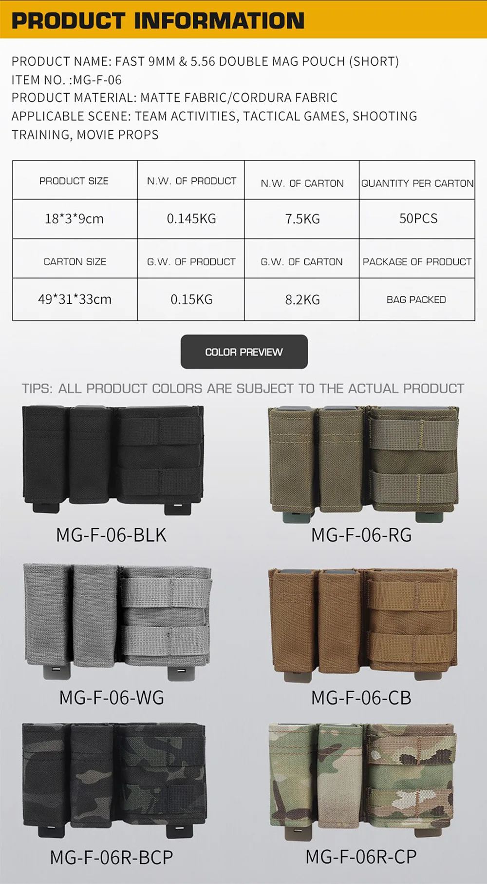 Nombre del producto: Bolsa de doble cargador FAST de 9 mm y 5,56 (corta)