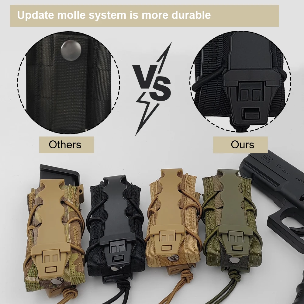 Diseño del sistema Molle. Molle Pistol Magazine Pouch también se puede conectar al chaleco, cinturón, mochila.