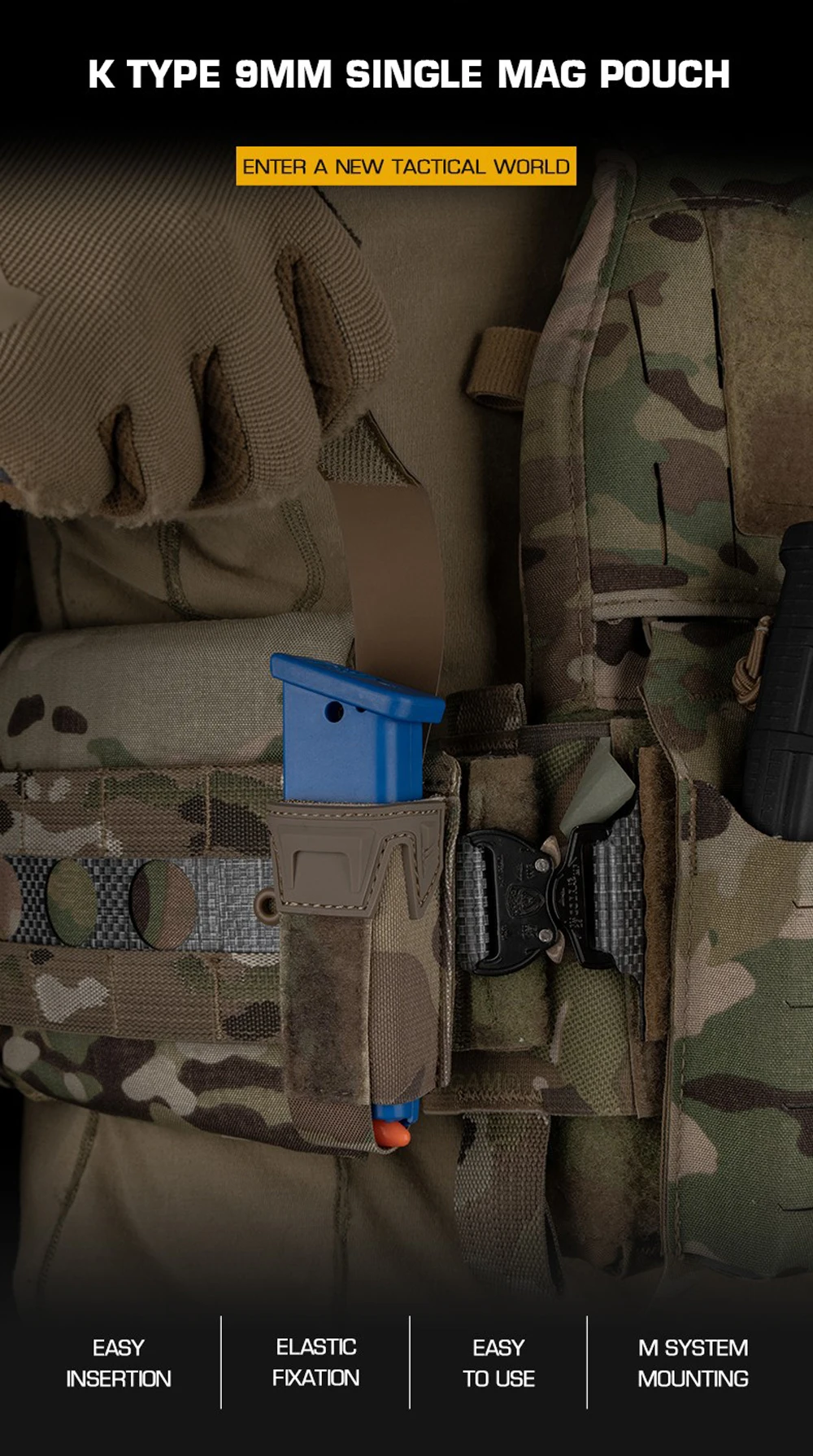 Bolsa táctica para revistas, 9mm, simple/doble, liberación rápida, MOLLE, caza, tiro, Airsoft, bolsa Mag, linterna, equipo de funda para cuchillo
