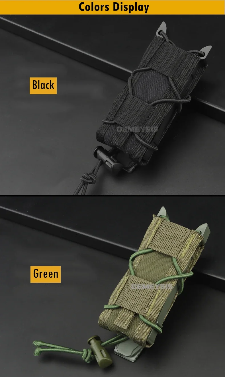● Capaz de sostener revistas de 9mm, también puede sostener una variedad de multiherramientas, cuchillos y linternas más pequeñas. La tensión ajustable te permite sujetar tus accesorios de forma segura.