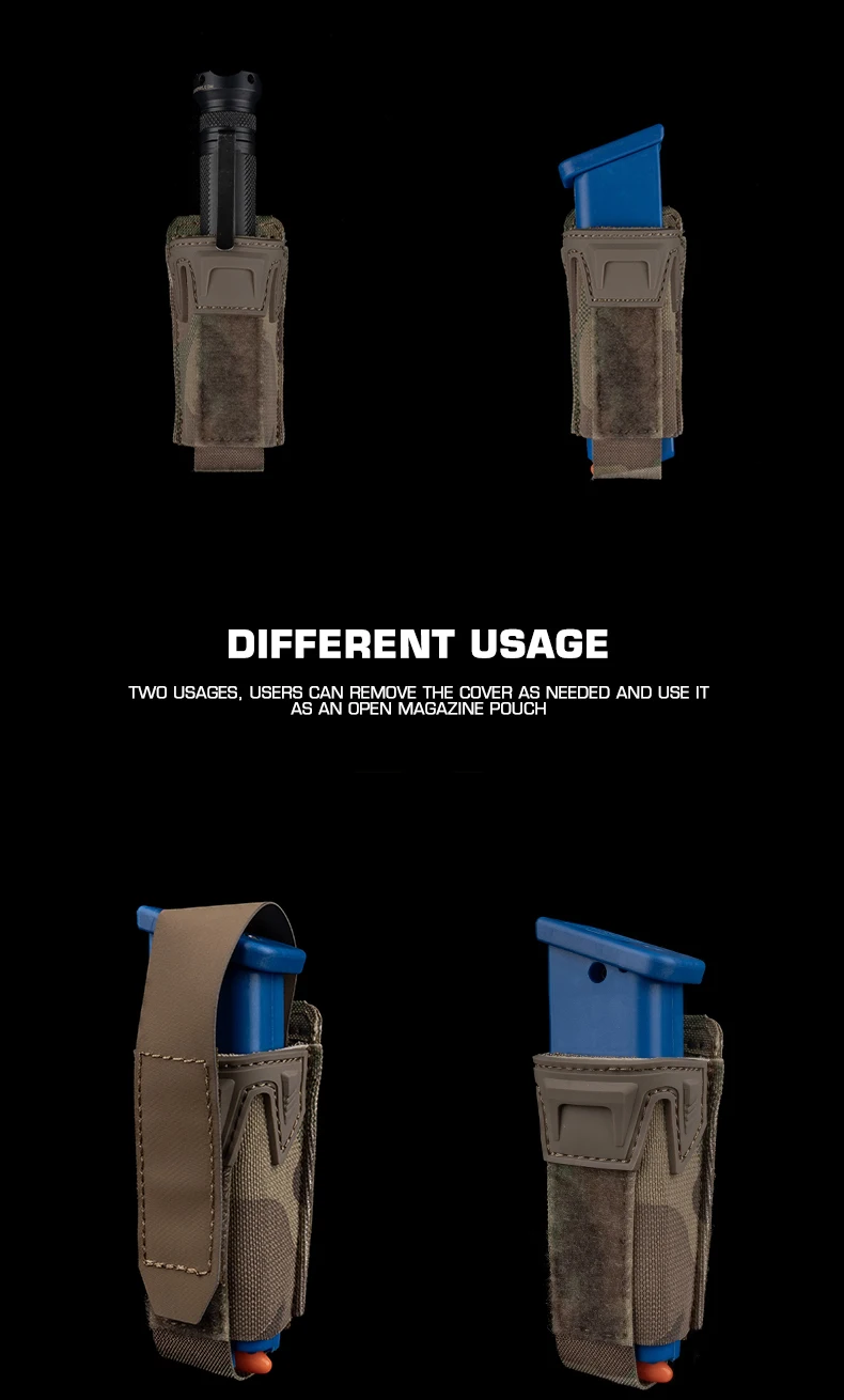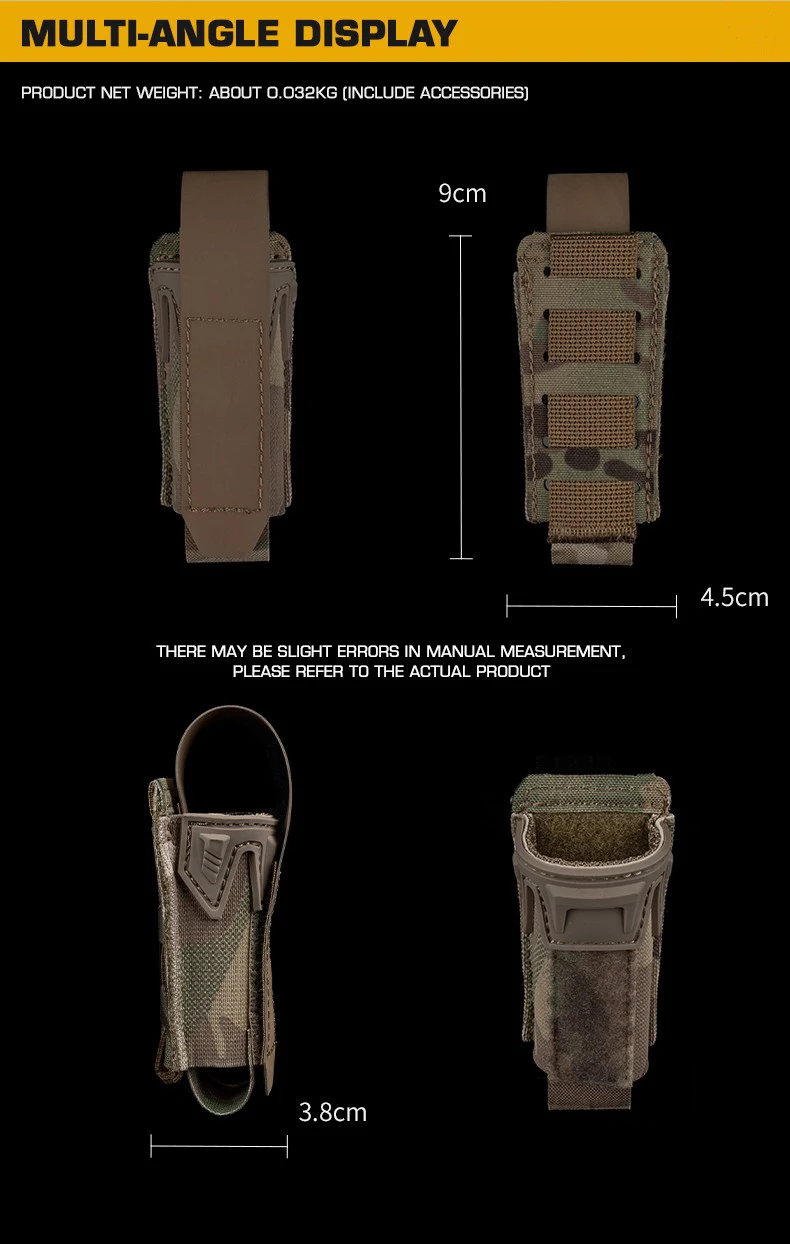 Bolsa táctica para revistas, bolsa individual Mag de 9MM, liberación rápida, MOLLE, Airsoft, caza, tiro, Mag, linterna, cuchillo, bolsa de herramientas