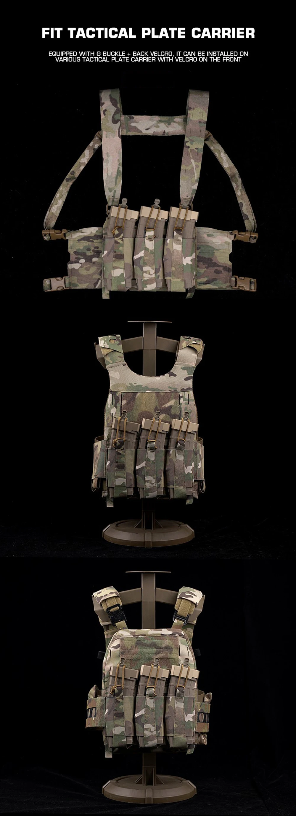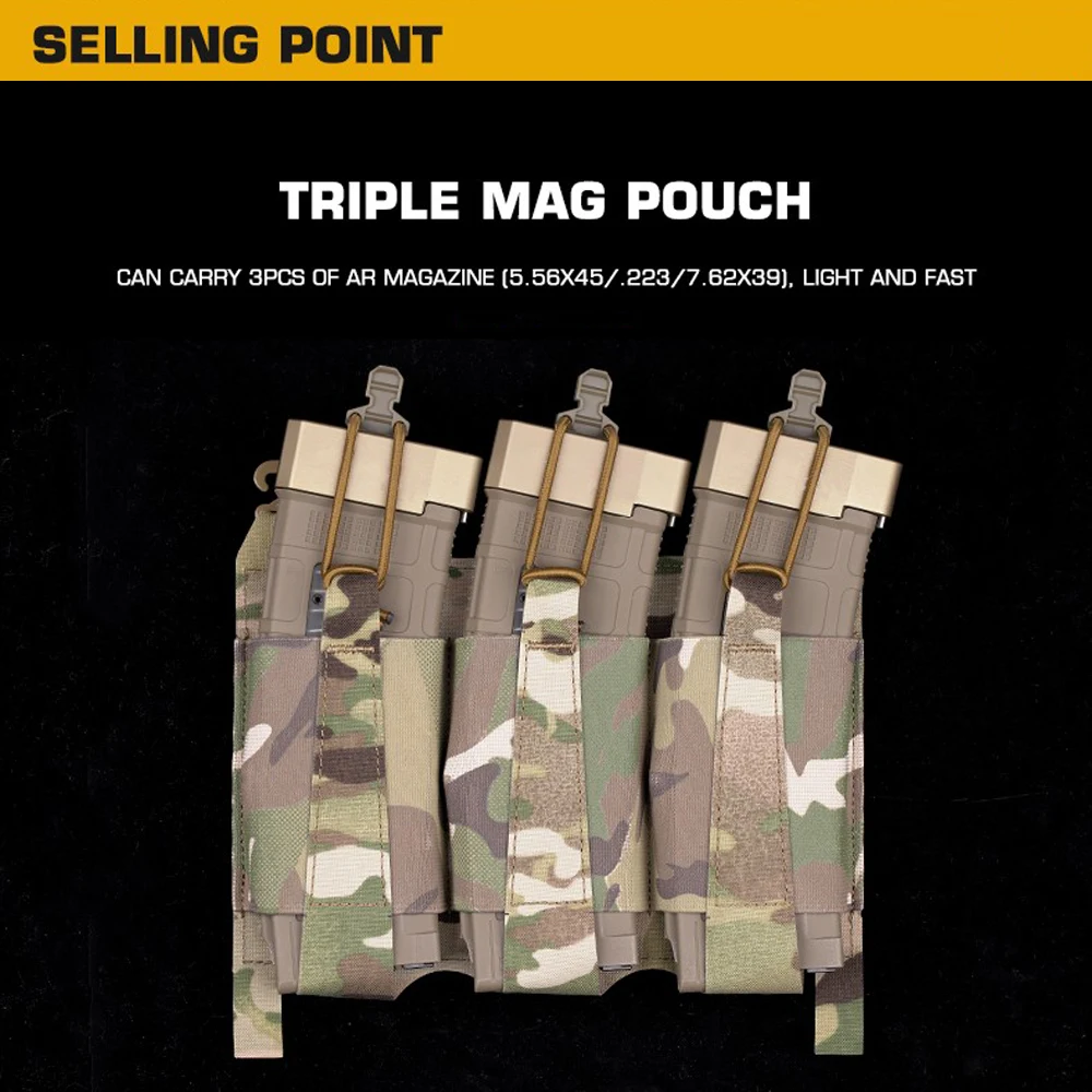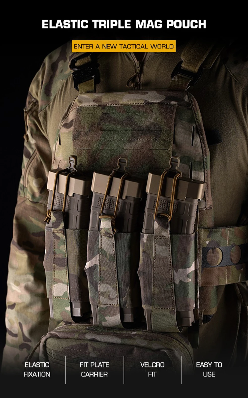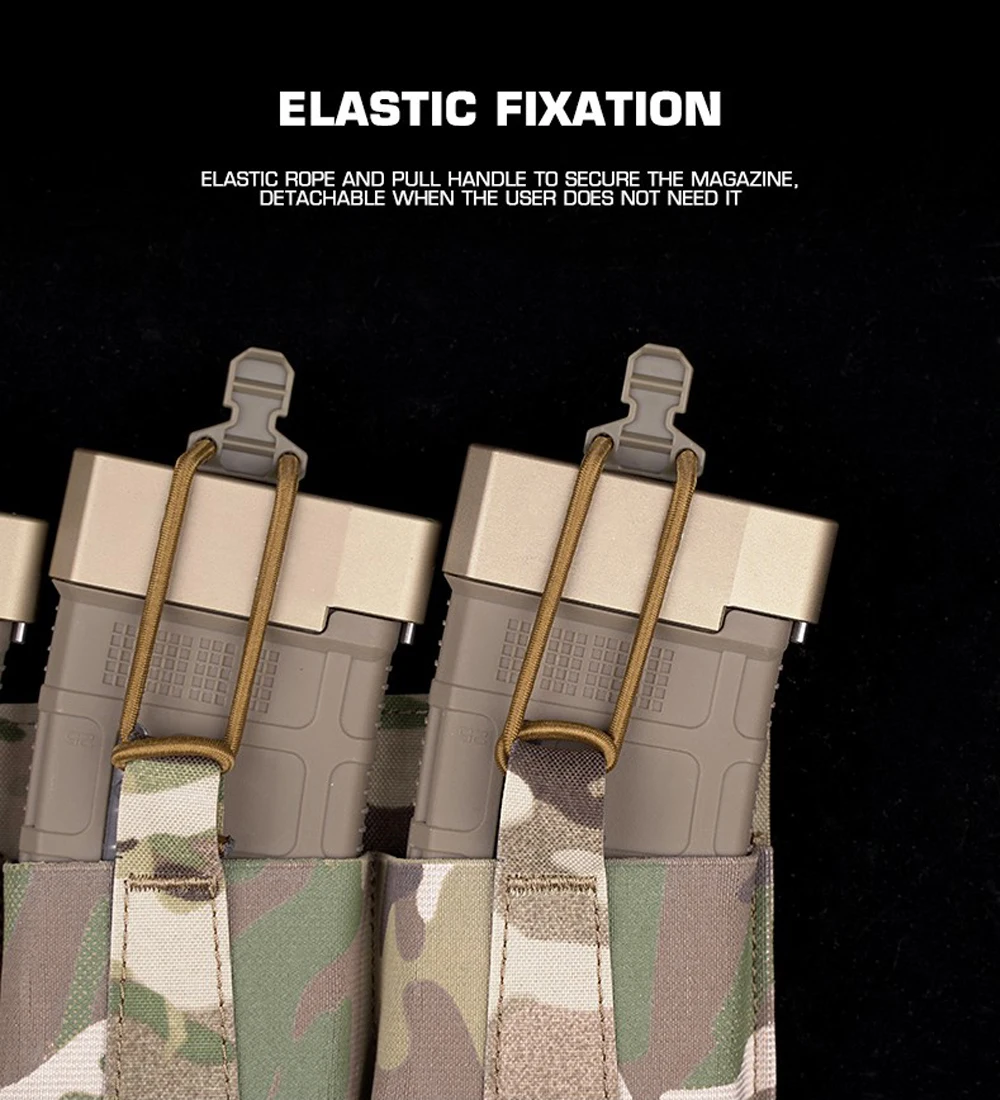 Bolsa táctica para revistas Triple elástica 5,56. 223 7,62 Mag Holder Bag G Hook Buckle Hunting Plate Carrier Vest Front Panel Gear