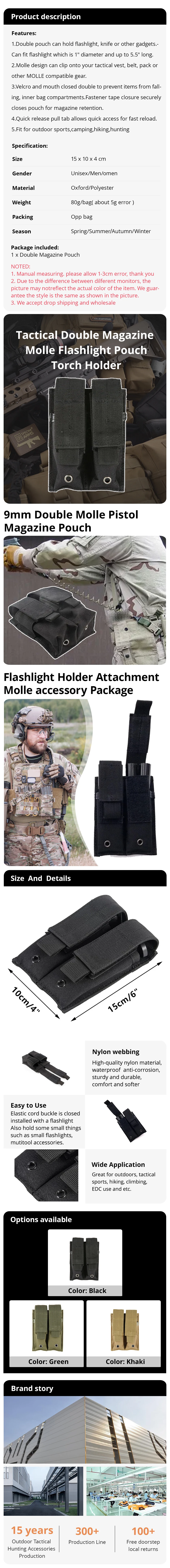 Bolsa táctica para revistas, funda doble para pistola, Molle, linterna, soporte para linterna, cuchillo de caza al aire libre