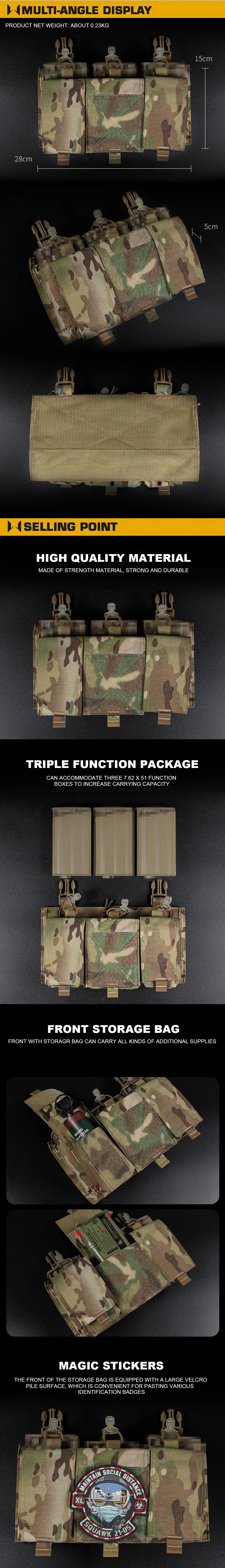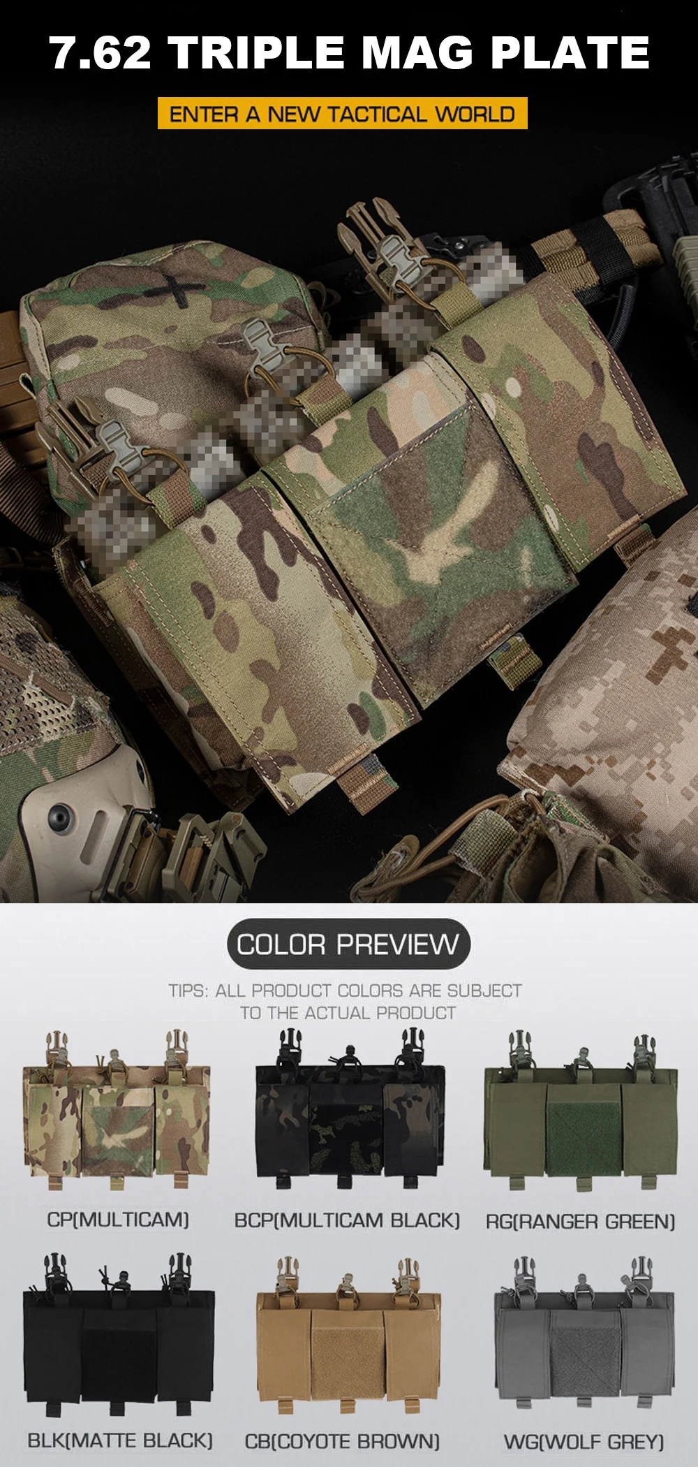 Bolsa de almacenamiento de placa de bolsa de revista Triple 7,62 para chaleco táctico con hebilla de 25MM/aparejo de pecho Panel frontal Mag bolsa Airsoft equipo de caza