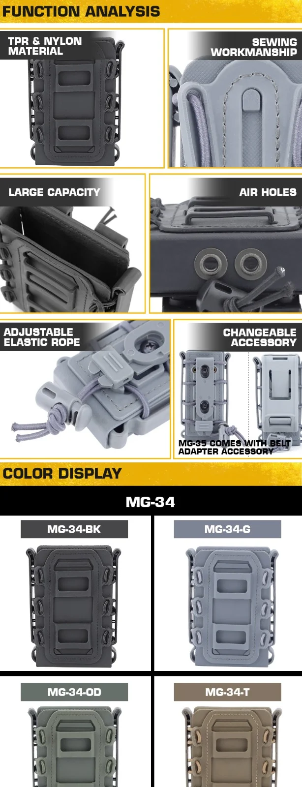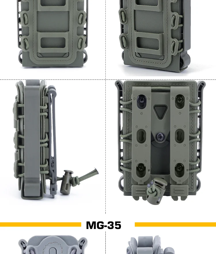 Increíblemente fácil de acoplar al chaleco o al cinturón. El diseño es excelente, y tanto los cargadores de 5.56 como los de 7.62 encajan sin problemas. Está bien fabricado, la entrega fue rápida y la comunicación con el vendedor fue de primera calidad. Definitivamente compraré más de este producto.