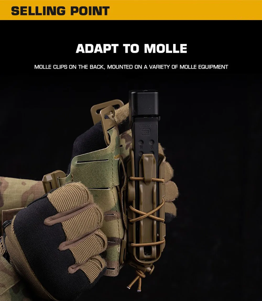 Bolsa táctica para cargador de pistola, bolsa con soporte magnético de 9mm/45ACP, sistema Molle de liberación rápida ajustable, equipo Airsoft para caza y tiro