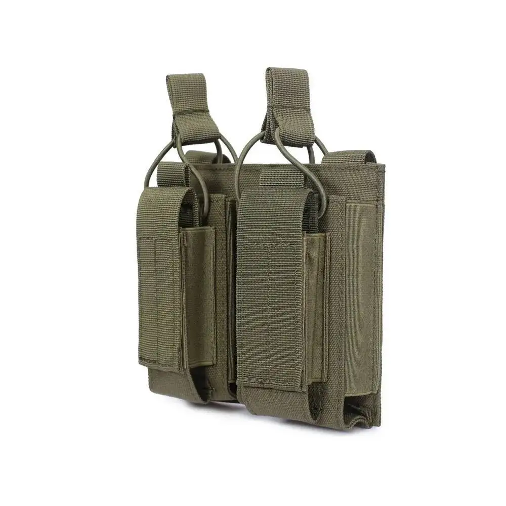 Bolsa táctica para cargador, soporte para pistola, MOLLE, doble pila, cordón elástico de choque, accesorios de caza de retención