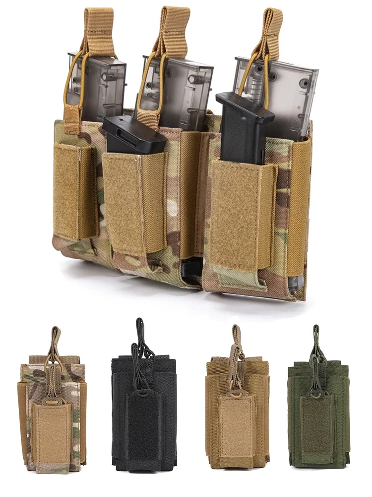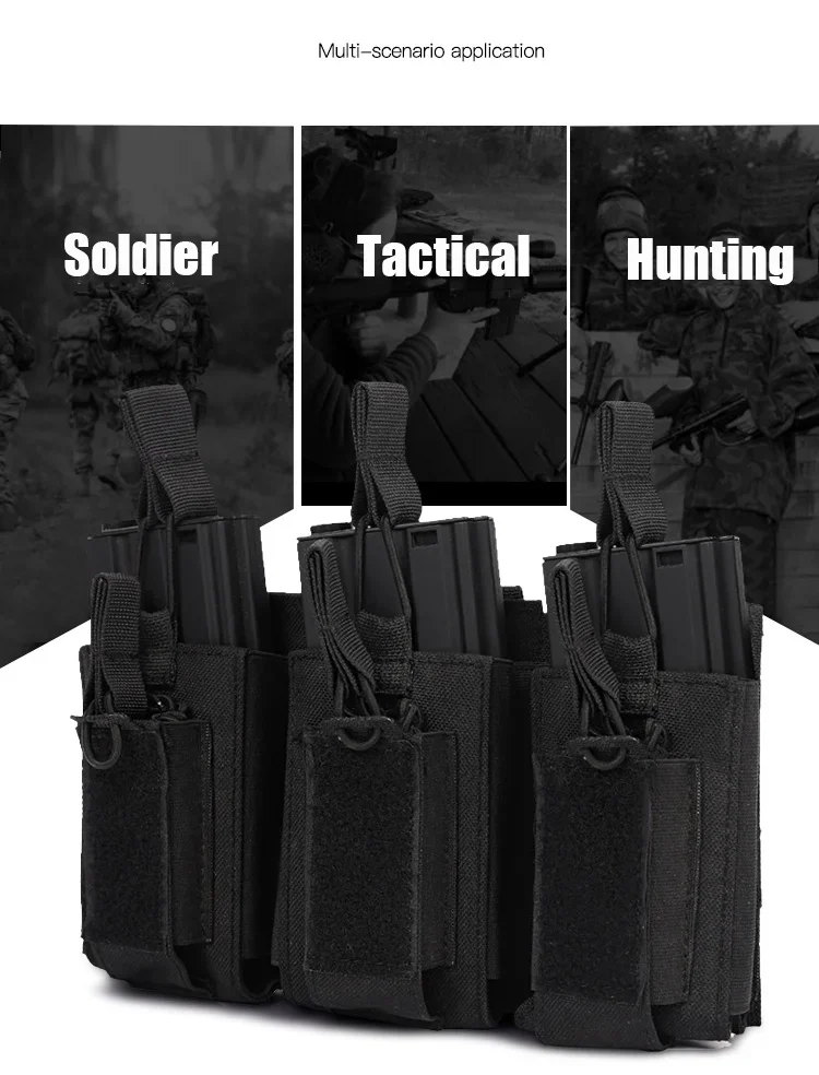 【Fuerte compatibilidad】- Bolsa para cargadores de rifle para guardar la mayoría de cargadores de rifle de 5,56/7,62 mm como cargadores de rifles tipo AK, M4, M16 y AR.Bolsas para cargadores de pistola para guardar cargadores Glock, M1911 y 92F, etc.