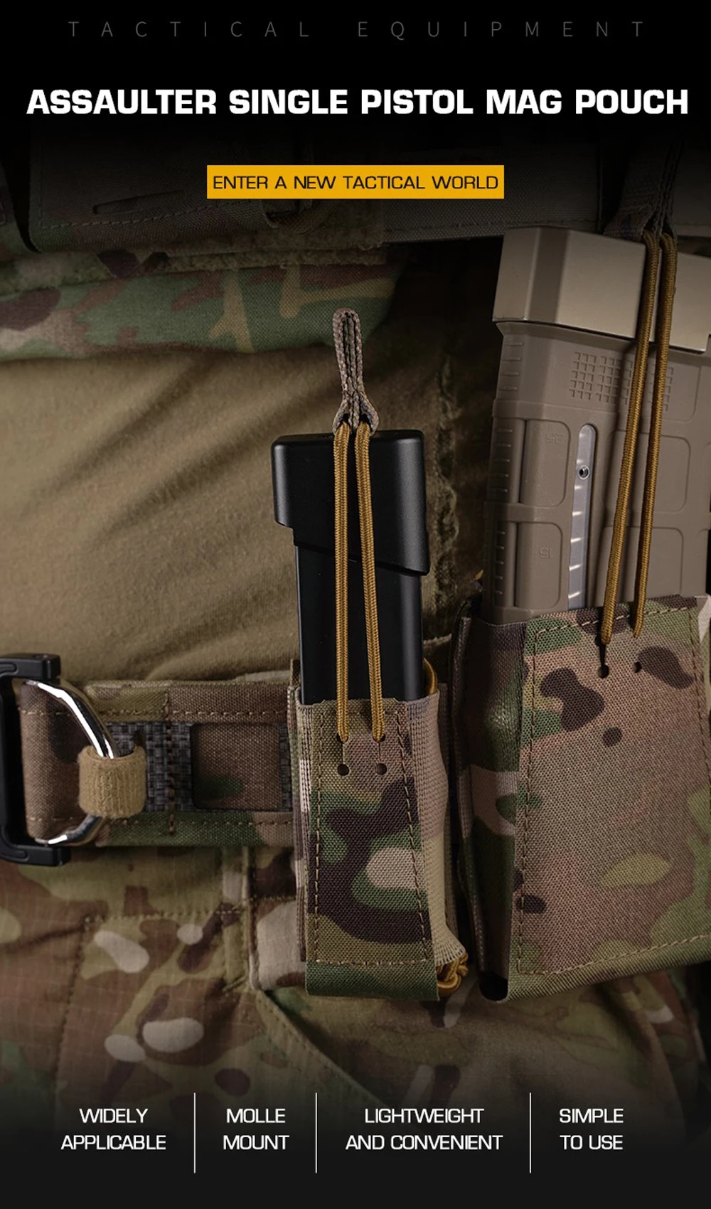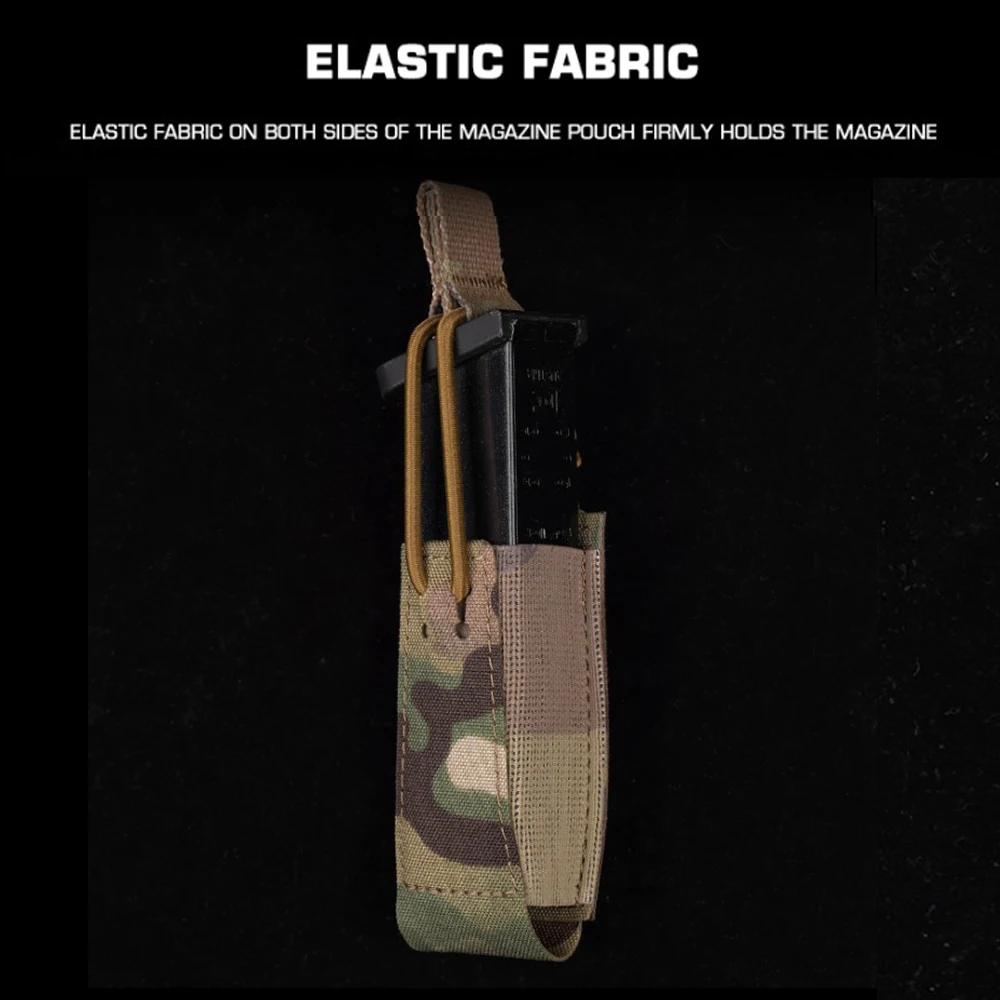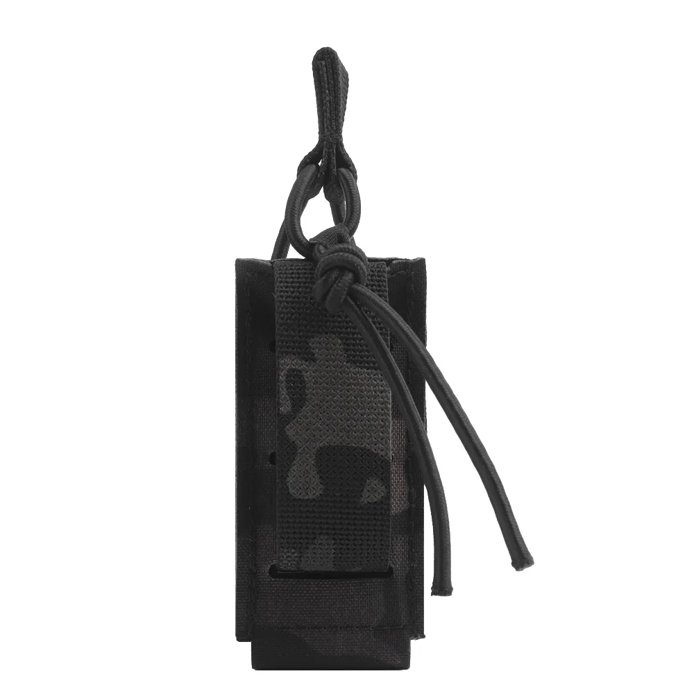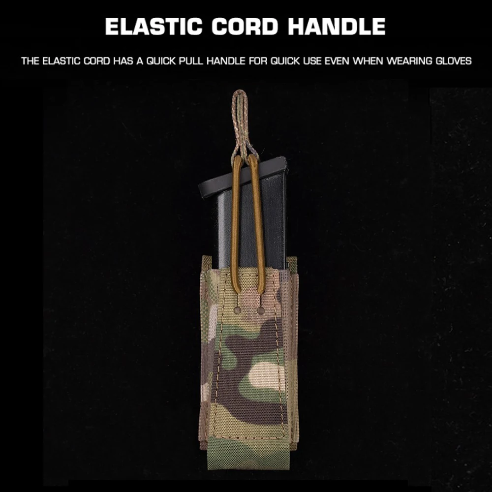 Bolsa táctica para revistas de una sola pistola, soporte militar para caza Airsoft de 9mm con cuerda elástica, retención Molle