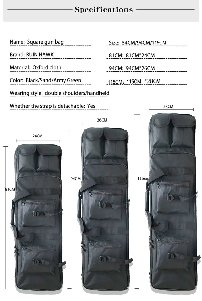 Contiene cubierta extendida capaz de almacenar rifle con 50 "de longitud máxima.