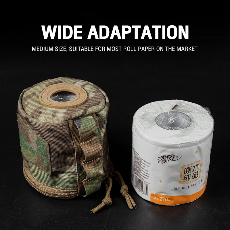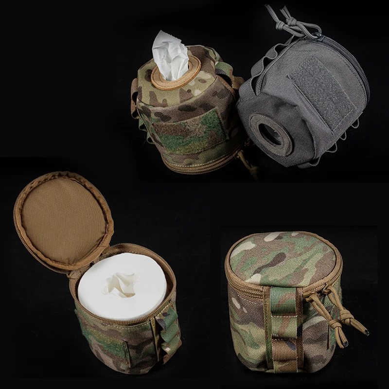 Portarrollos de papel higiénico táctico, estuche redondo con cremallera YKK, servilletas inferiores, accesorios de caza, equipo militar