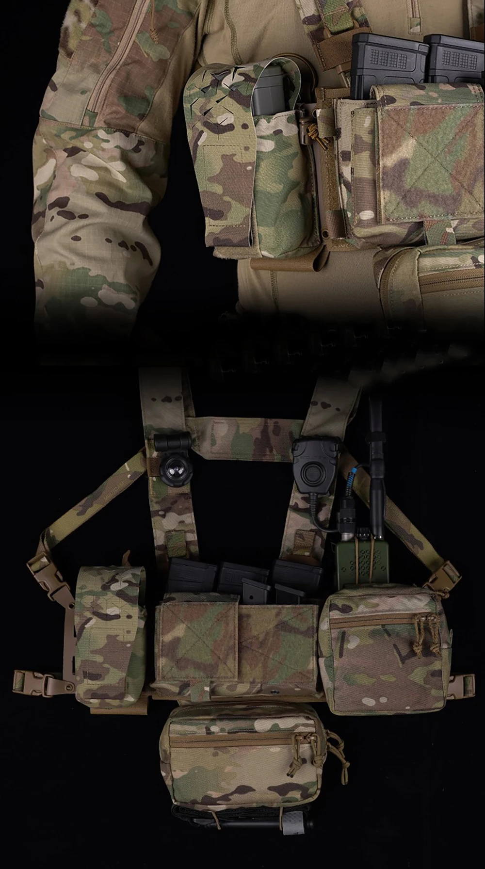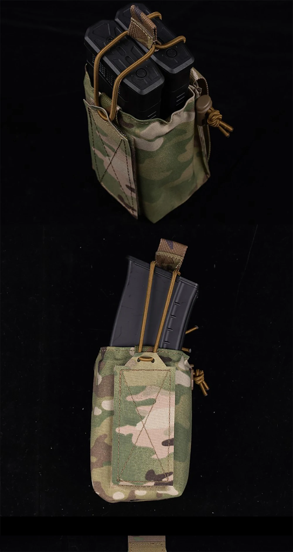 Holds two 5.56/7.62 magazines, water bottle or most radio