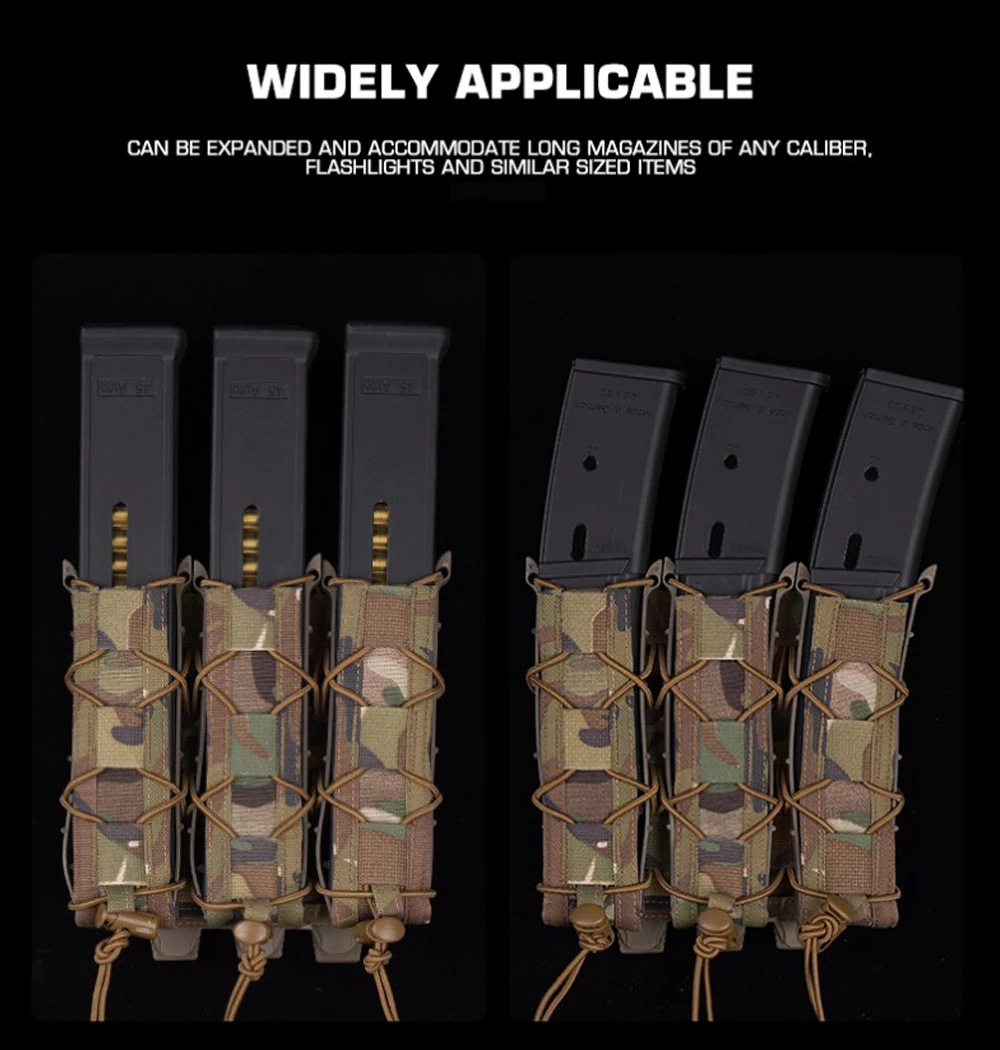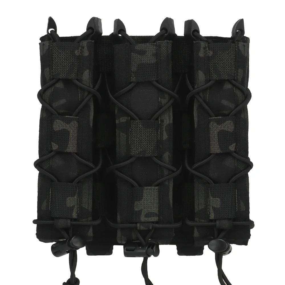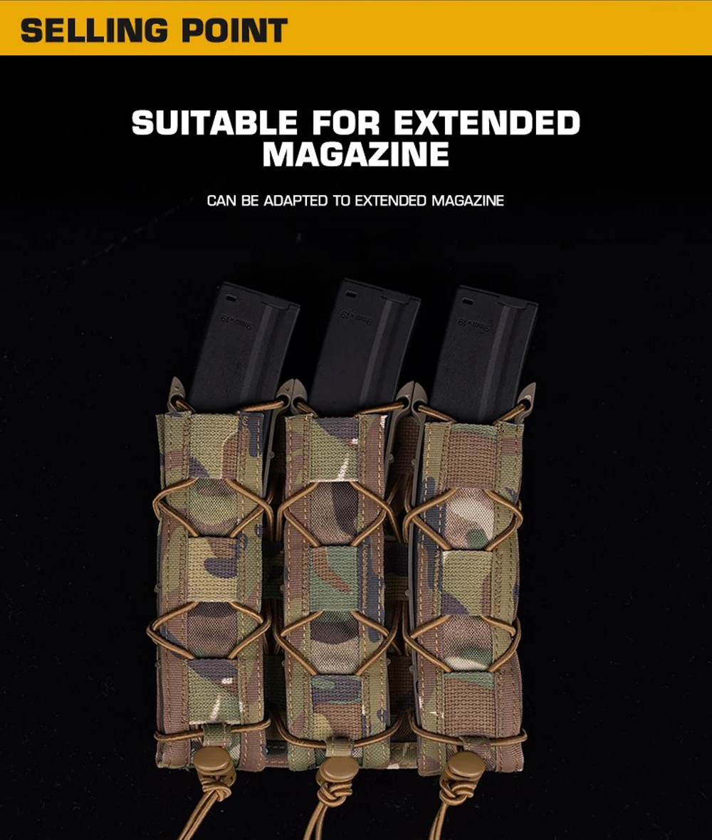 Bolsa táctica tipo tigre larga Triple Mag para pistola de tracción rápida de 9mm, soporte para cargador, bolsa MOLLE para caza Airsoft, chaleco, equipo de cinturón