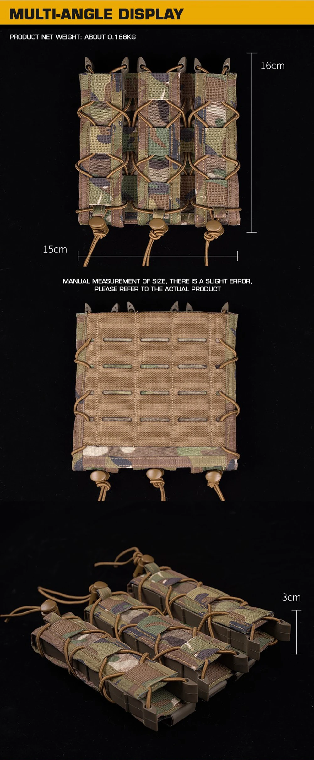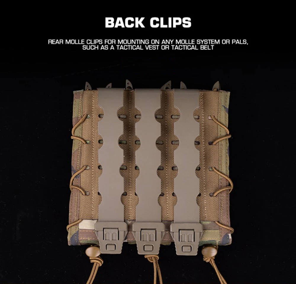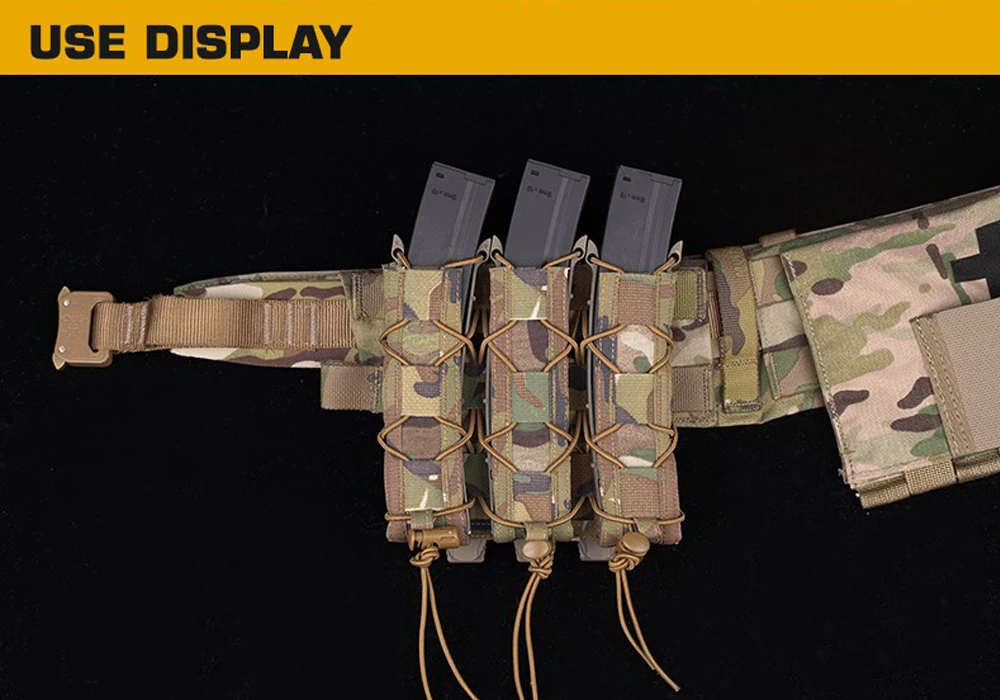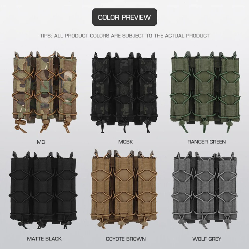 Bolsa táctica tipo tigre larga Triple Mag para pistola de tracción rápida de 9mm, soporte para cargador, bolsa MOLLE para caza Airsoft, chaleco, equipo de cinturón