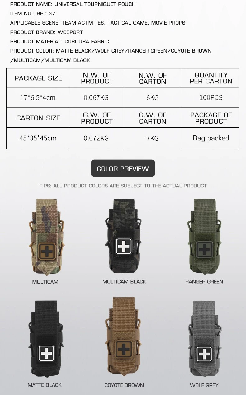 Bolsa táctica de torniquete Molle para exteriores, cubierta abatible Universal, bolsa de almacenamiento de torniquete, herramienta de tiro de caza, bolsa Molle elástica