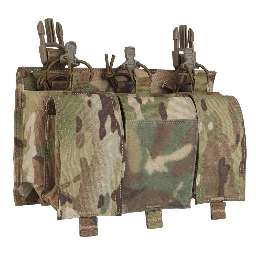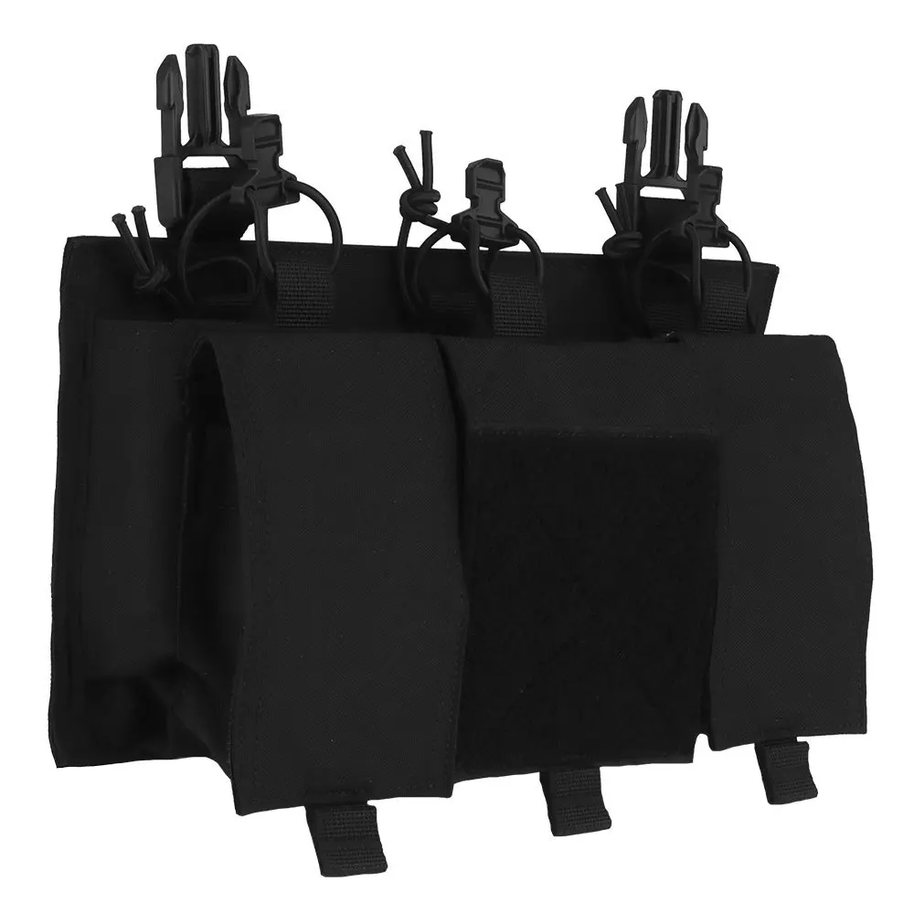 • Sostiene tres revistas de 7,62 con un sistema de retención de cable de choque ajustable.