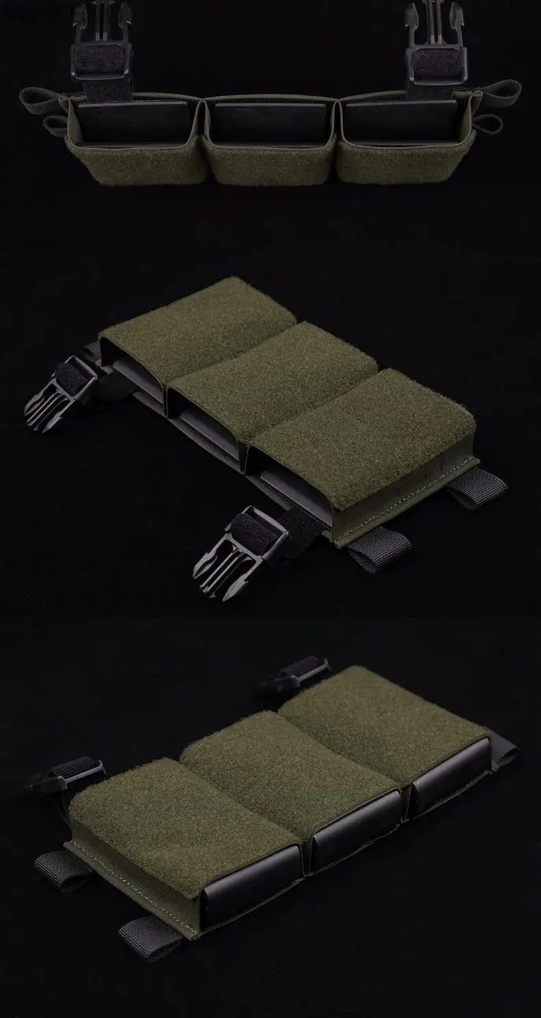 Nombre del producto: Bolsa de revista de triple propósito de 5,56/7,62mm Tamaño del producto: 29*4,5*13cm Peso neto del producto: 0,12 KG Peso bruto del producto: 0,14 KG Color del producto: negro, verde, bronceado, CP, BKCP Material principal: cordura El paquete incluye: 1 * bolsa de revista táctica