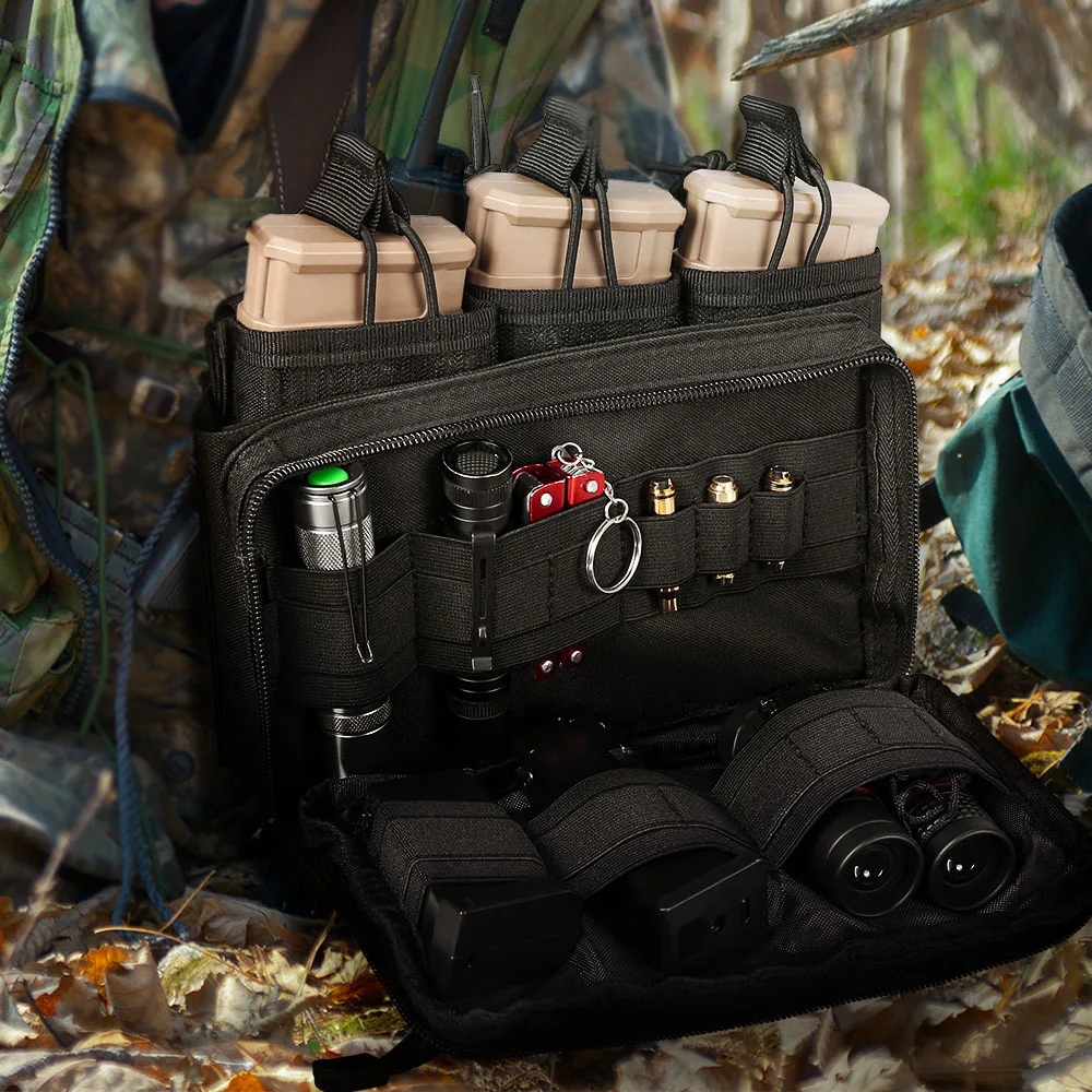 The front small bag can be used as a tool bag or medical bag. The elasticated slots on both sides of the inner pocket can hold medical supplies, pistol magazines, EDC tools, and more.