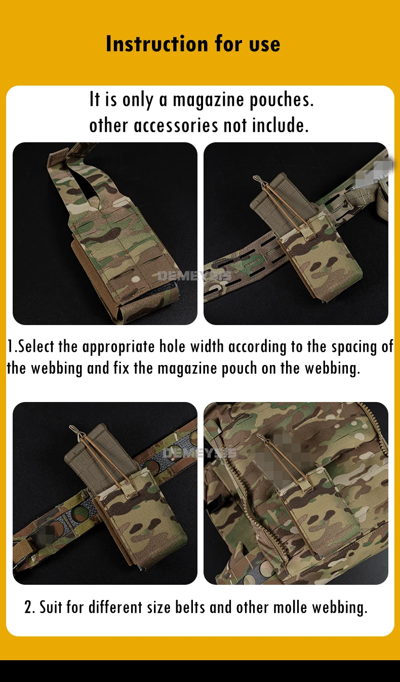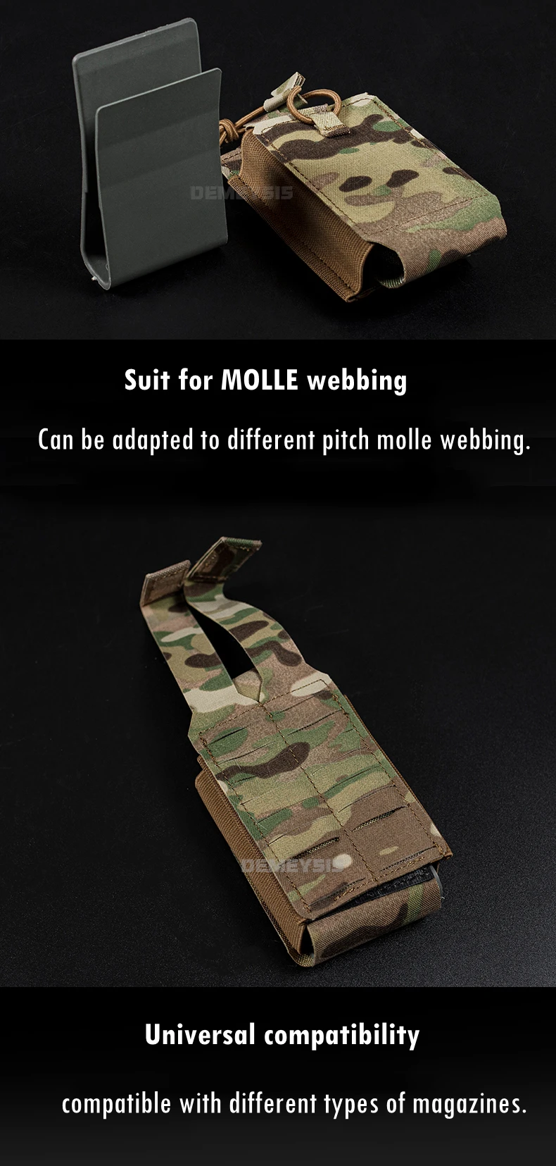 ●Se puede utilizar en chaleco, mochila, cinturón de batalla u otras correas molle.