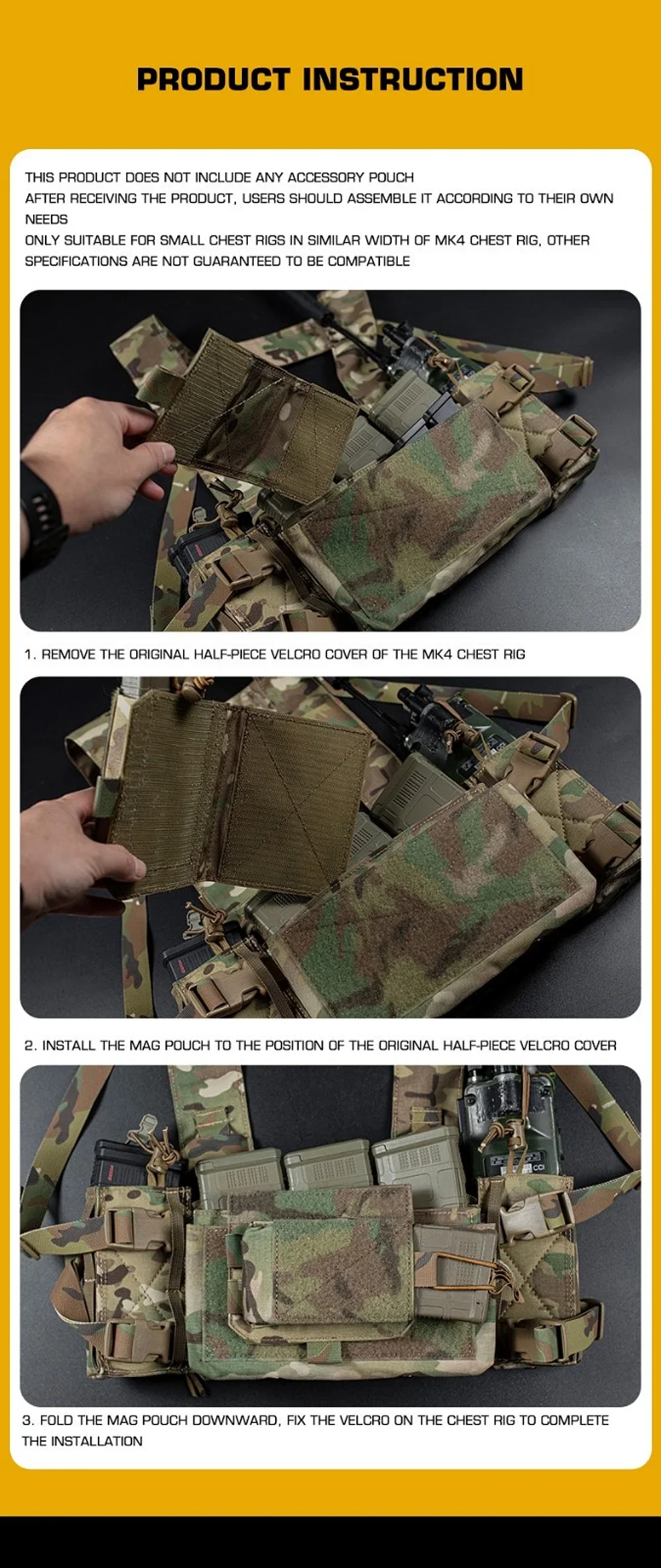 Bolsa táctica para una sola revista, paquete de utilidad Horizontal, bolsa de Radio MAG, cubierta de solapa de inserción para chaleco táctico de plataforma de pecho MK2 MK3 MK4
