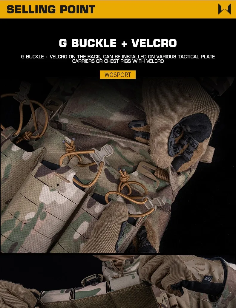 Botón G + Velcro trasero, se puede instalar en una variedad de chalecos tácticos o perchas de pecho conSujetadores de gancho y bucle