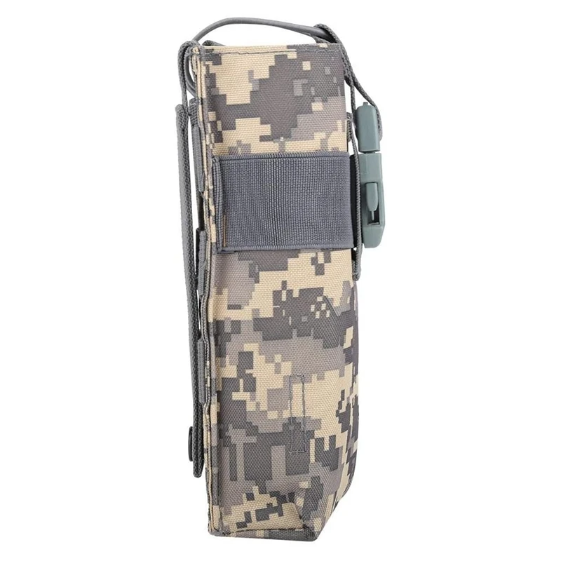 1. Nailon de alta densidad, resistente al desgaste y duradero. 2. Dos cinturones con botones a presión en la parte posterior, adecuados para cinturones tácticos y cualquier artículo del sistema Molle. Puede sujetarlo a un chaleco táctico, mochila, cinturón o ropa. 3. Portátil de llevar y fácil de usar. 4. Puede contener muchas cosas, botellas de agua, Radio Walkie Talkie, etc. Tamaño tipo A: 20*8,5*6cm/7,87*3,35*2,36 pulgadas Tamaño tipo B: 17*7*5cm/6,7*2,7*2,1 pulgadas