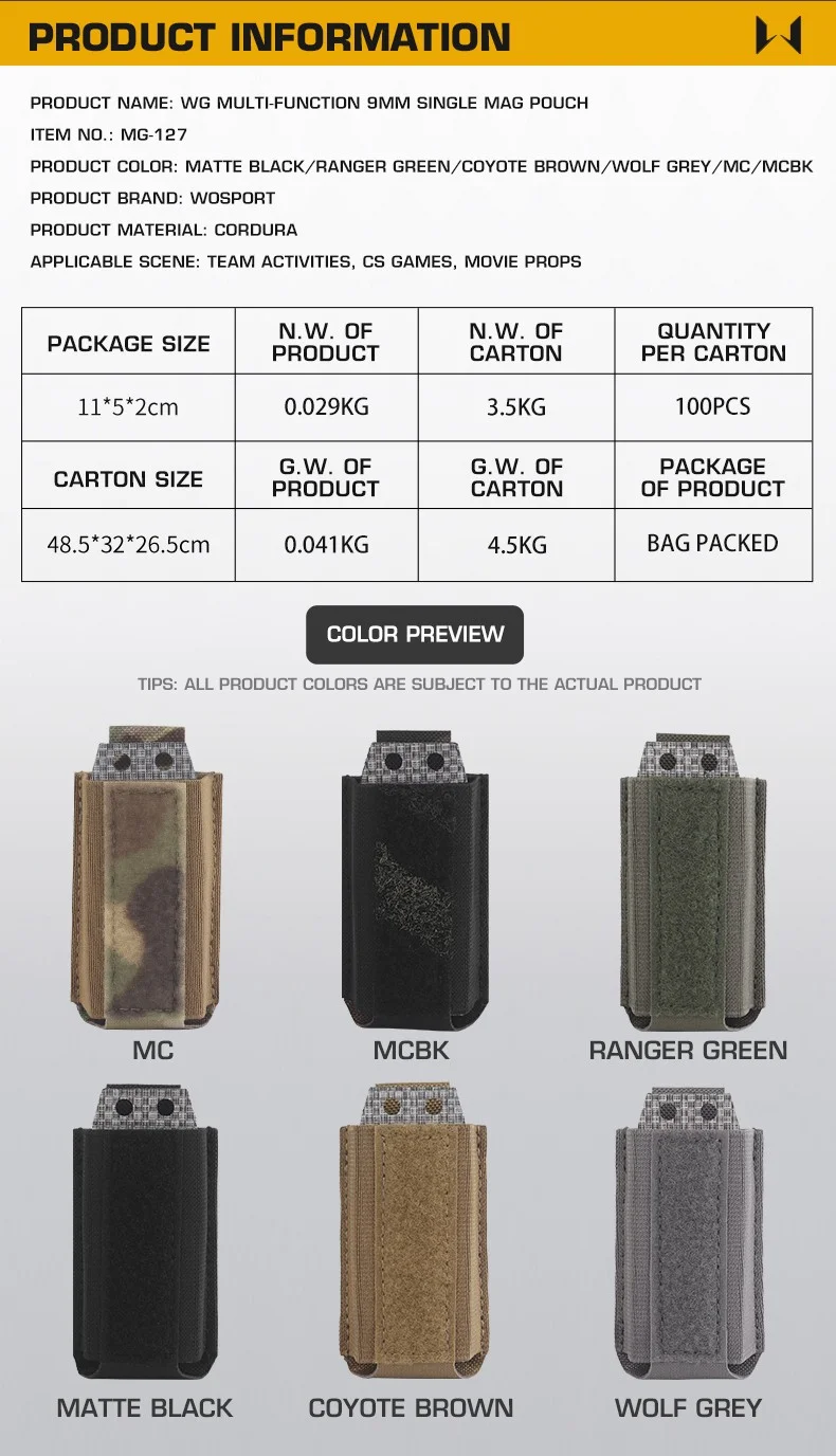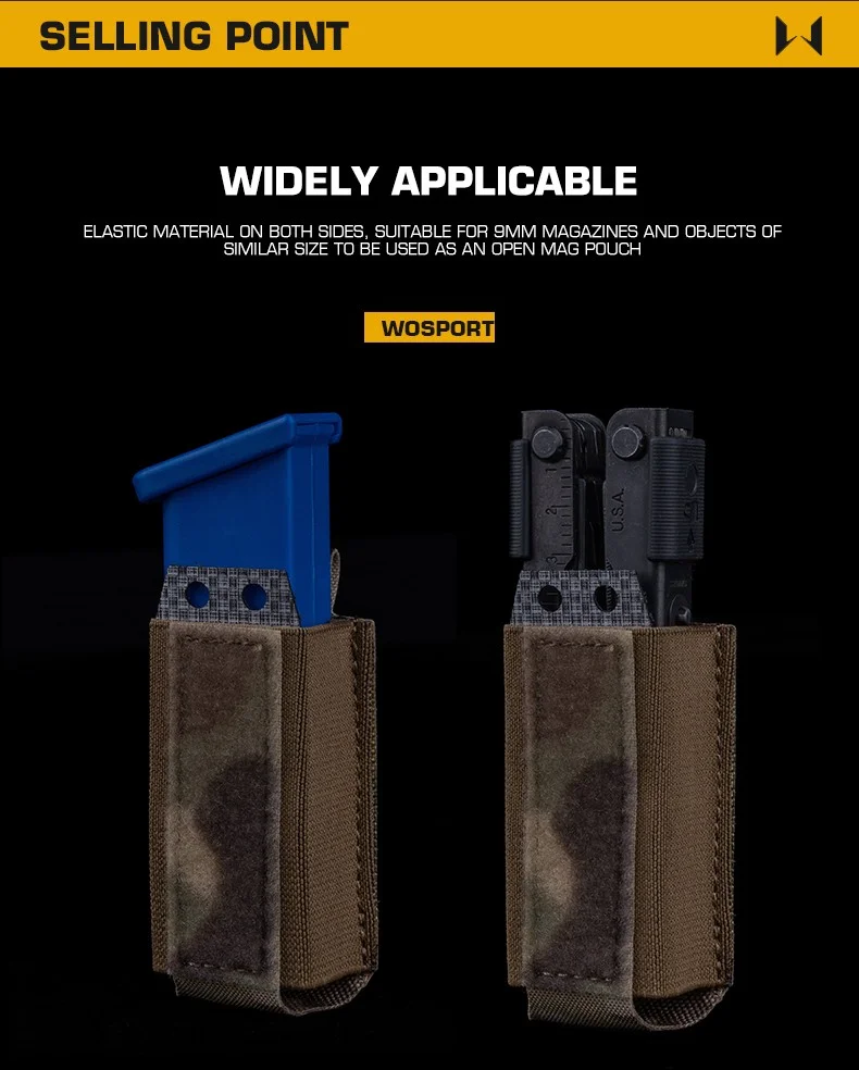 Bolsa táctica WG multifunción de 9mm para pistola individual Molle M1911 92F 40S y M, soporte para revistas con tapa abierta, funda para linterna